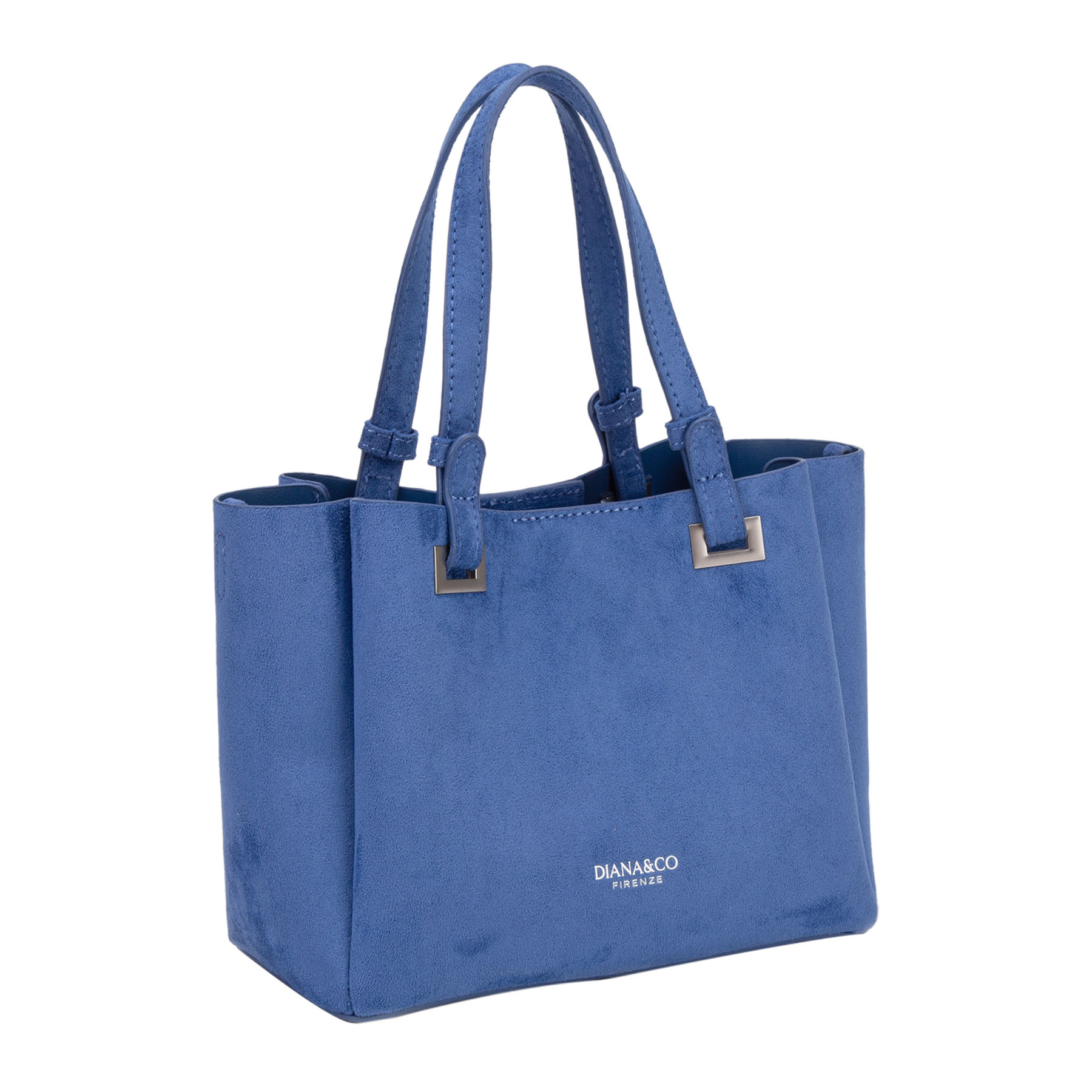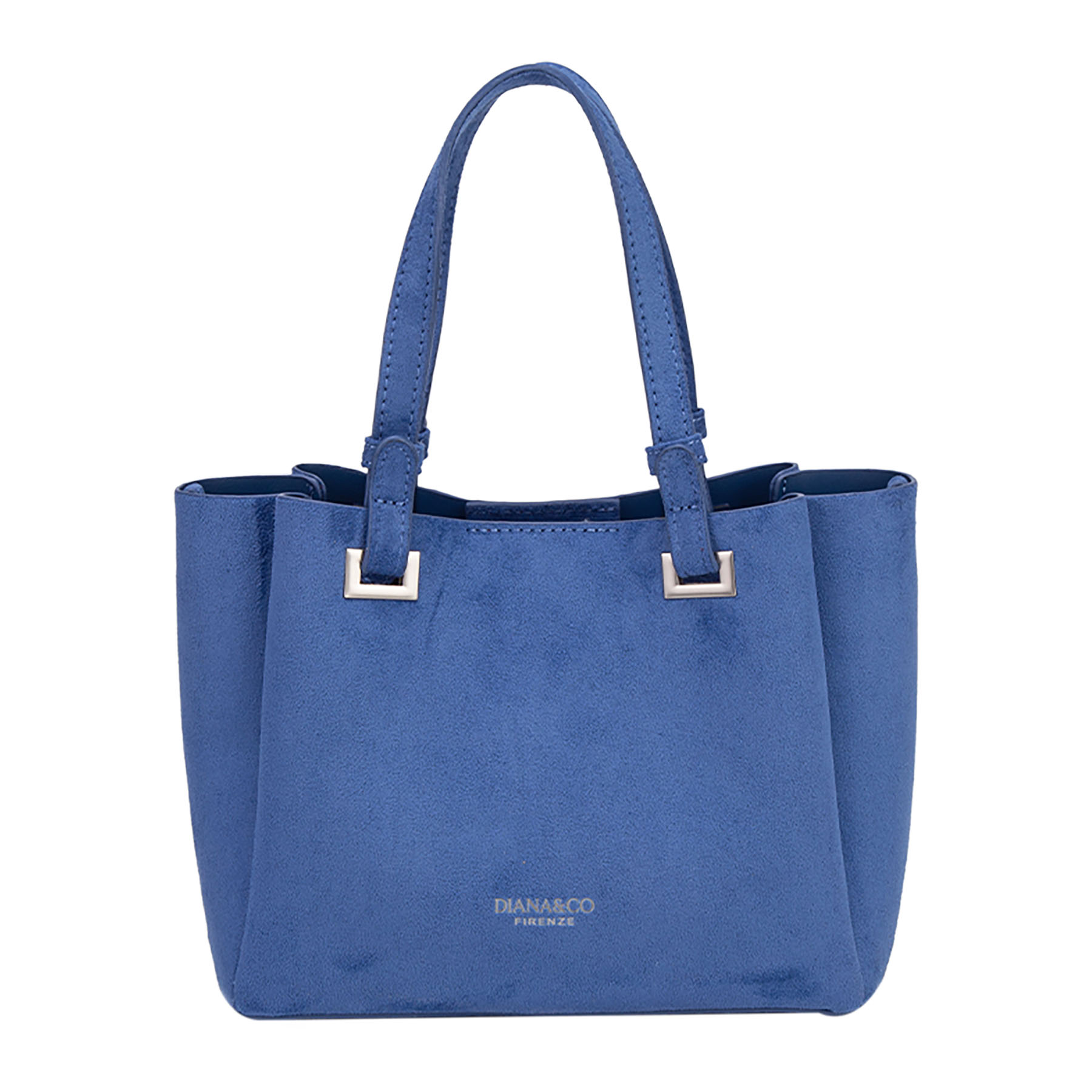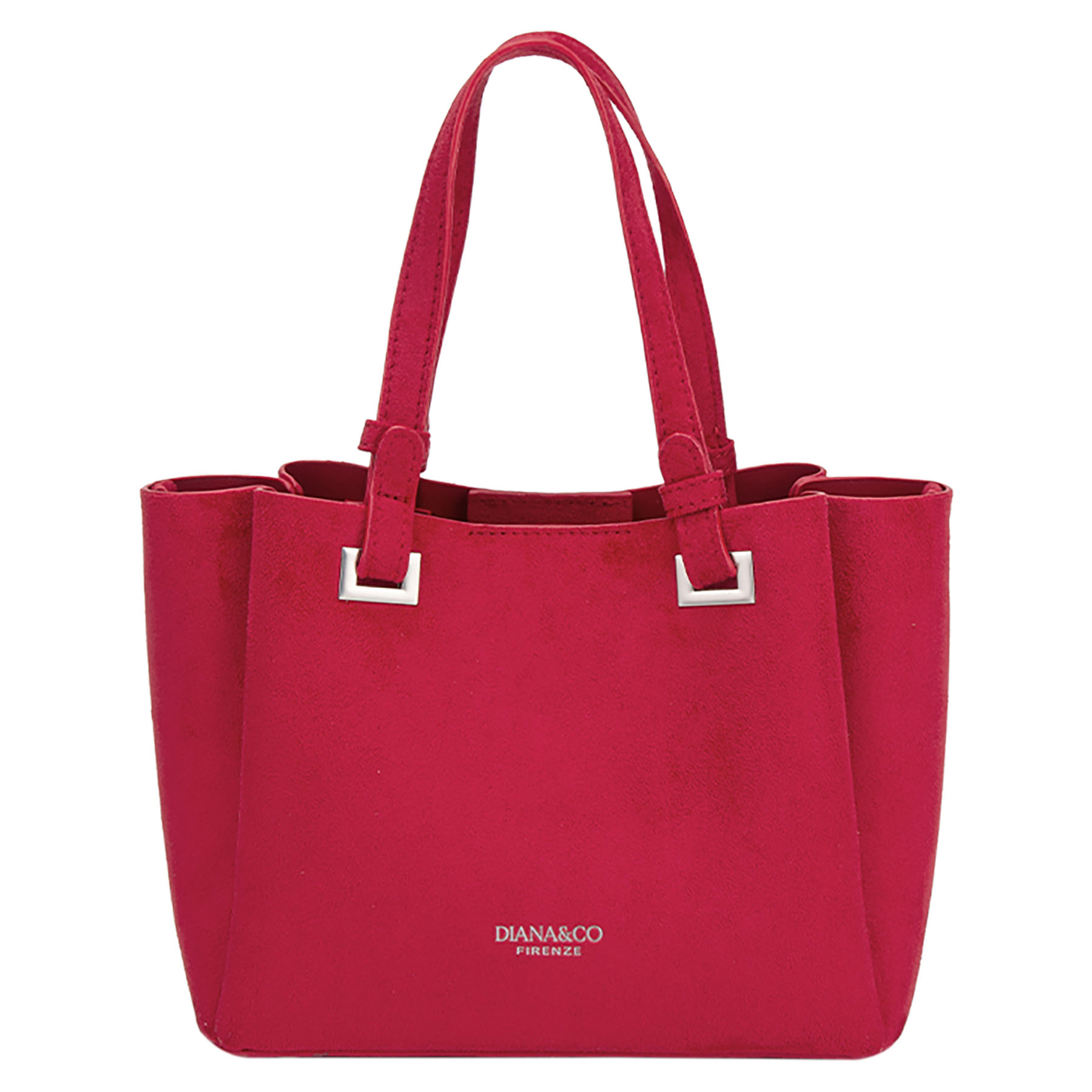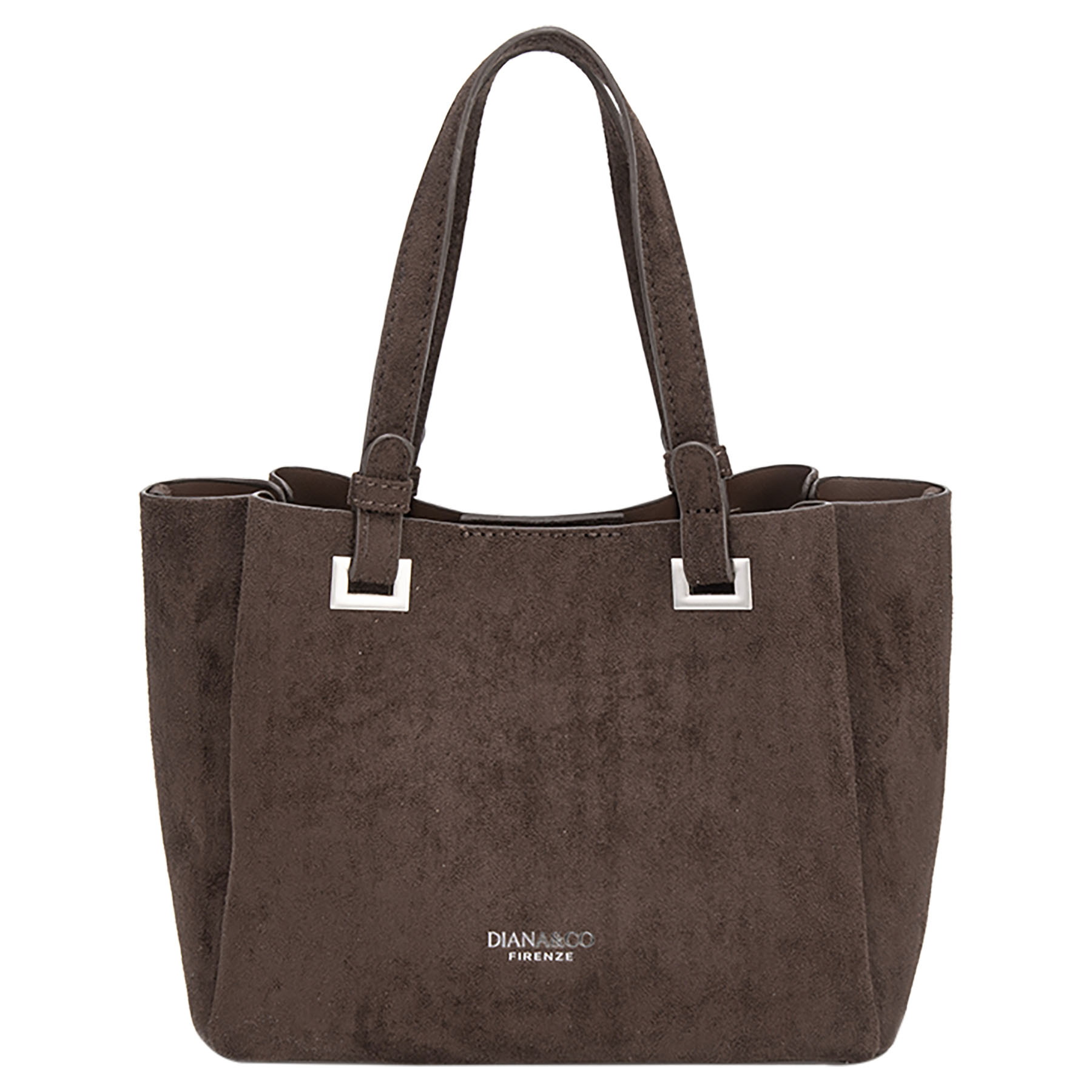 Raffinata borsa a mano strutturata in pelle scamosciata, firmata Diana & Co Firenze. Dotata di doppi manici superiori e impreziosita da eleganti dettagli in metallo color argento, è l’accessorio ideale per un look sofisticato e senza tempo.