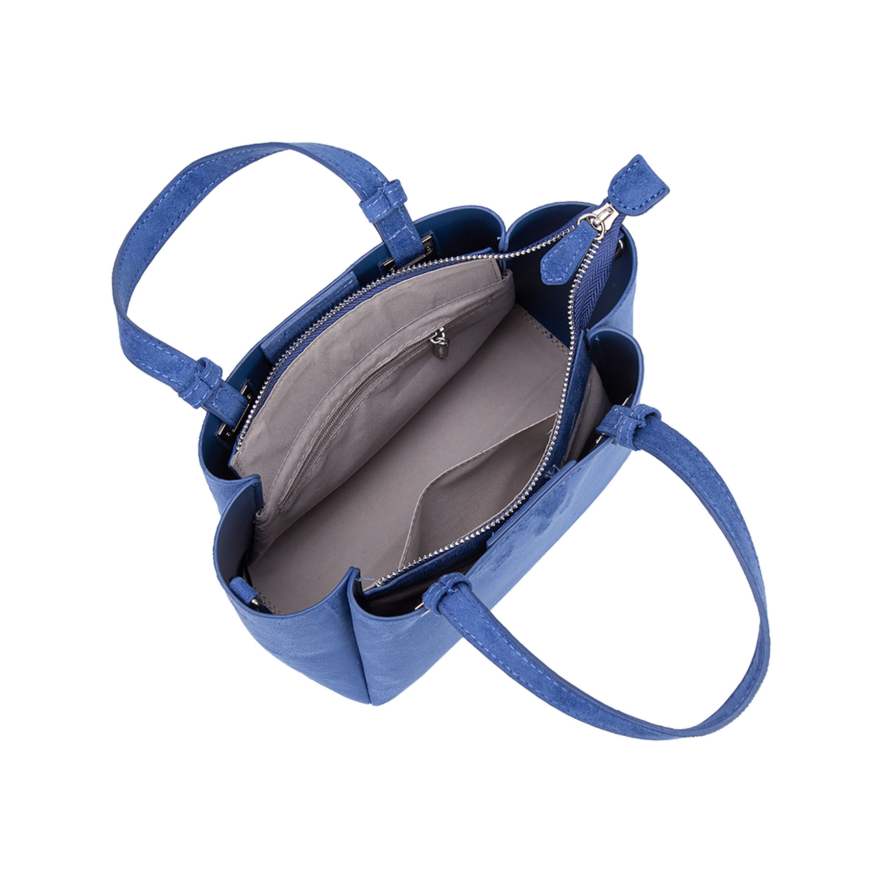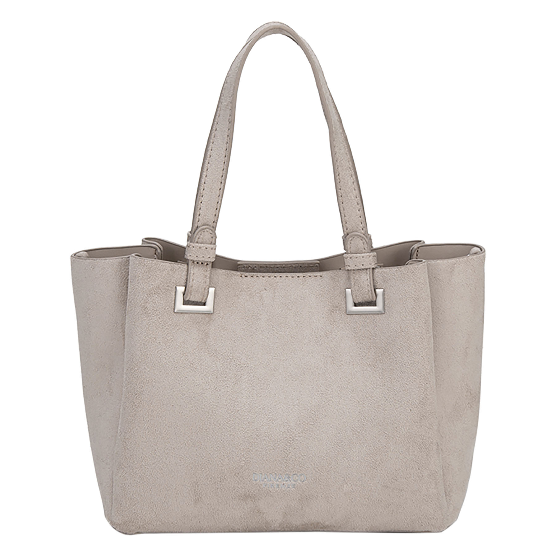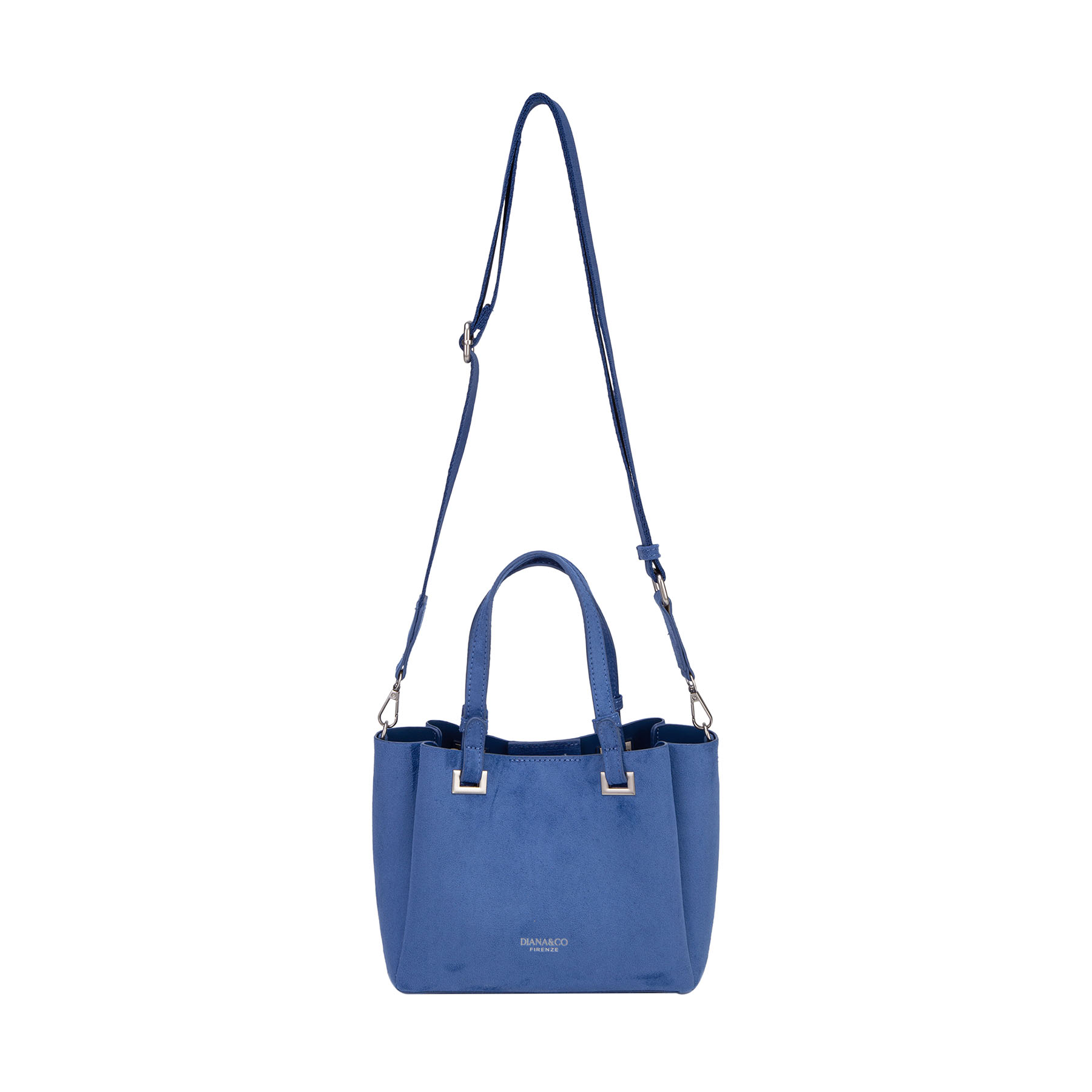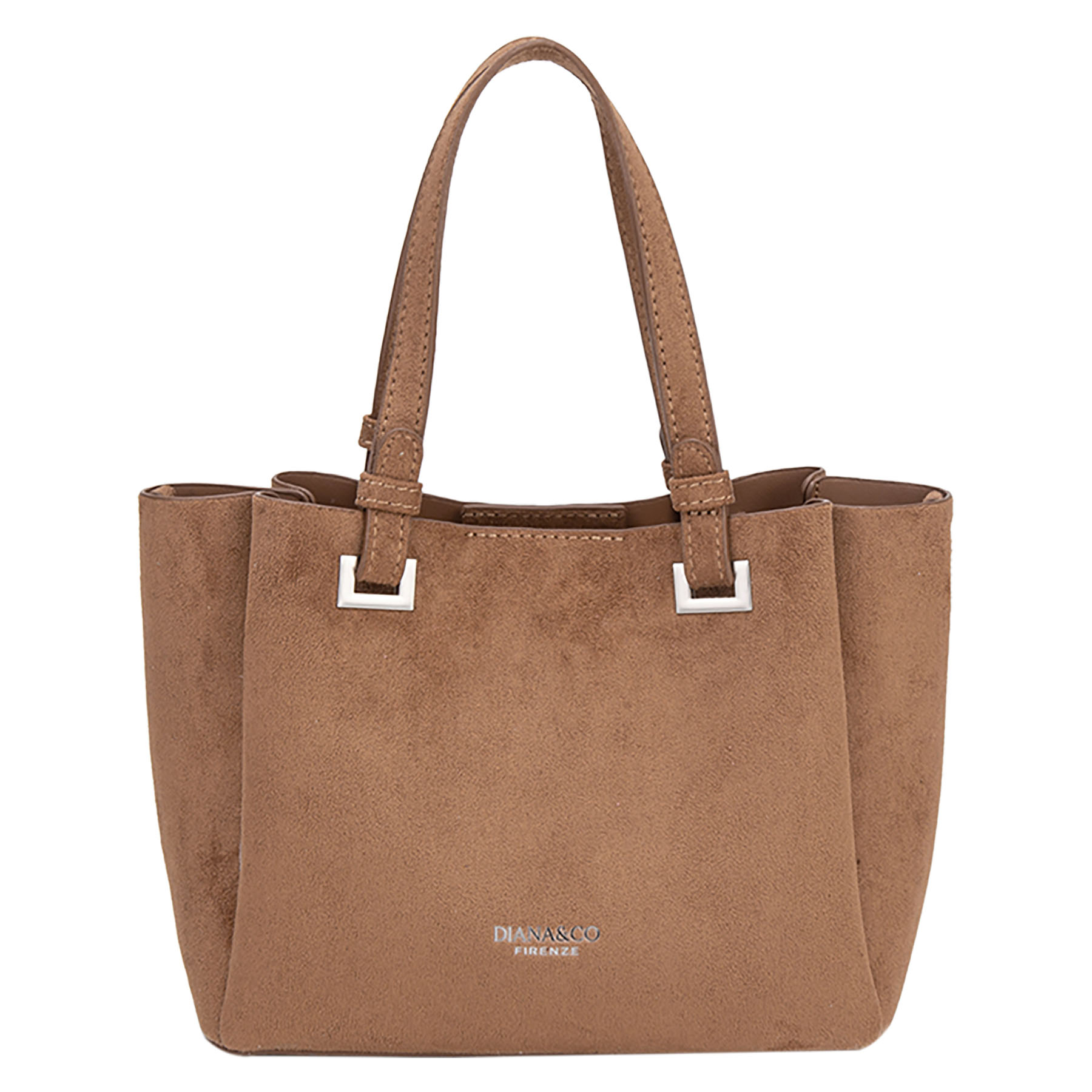 Raffinata borsa a mano strutturata in pelle scamosciata, firmata Diana & Co Firenze. Dotata di doppi manici superiori e impreziosita da eleganti dettagli in metallo color argento, è l’accessorio ideale per un look sofisticato e senza tempo.