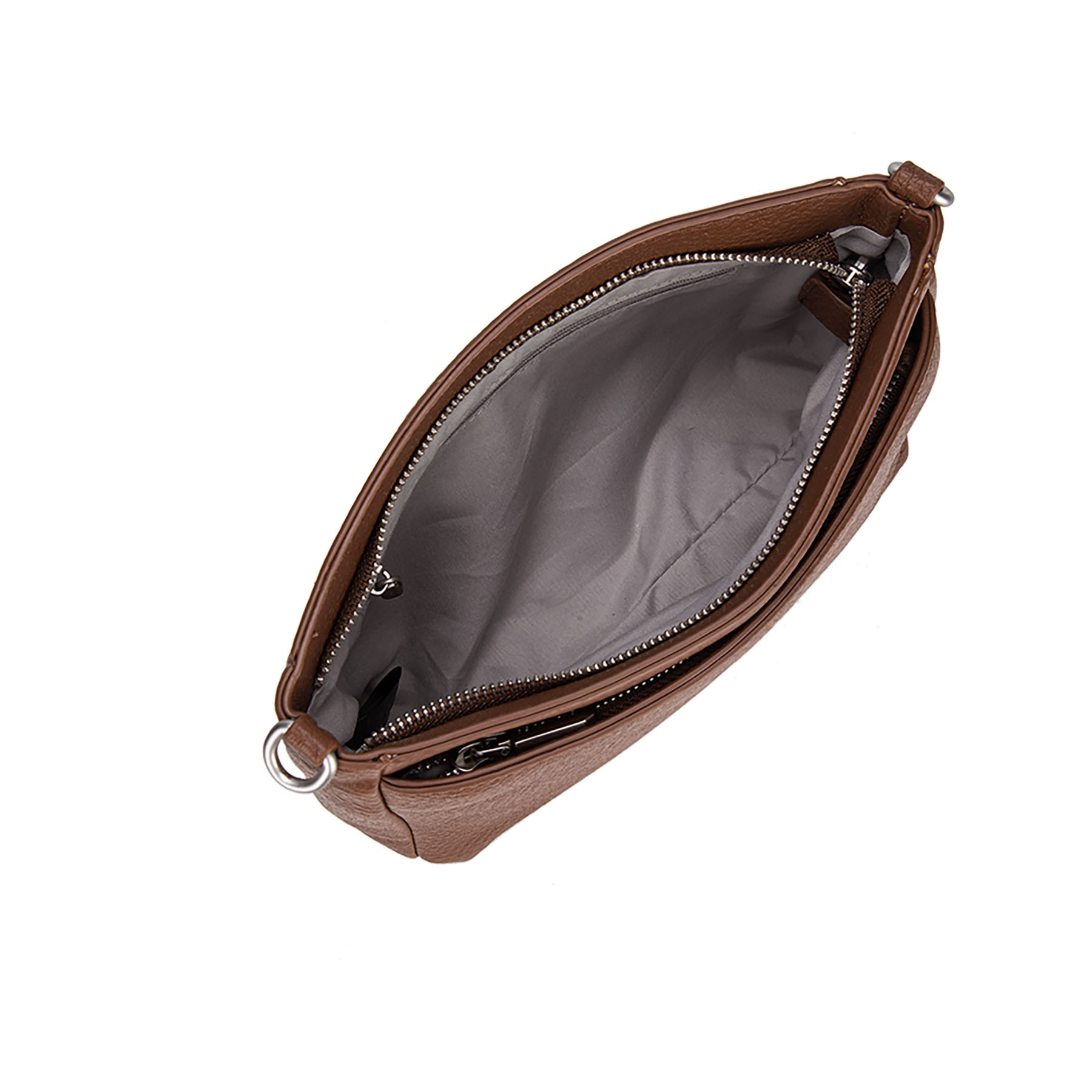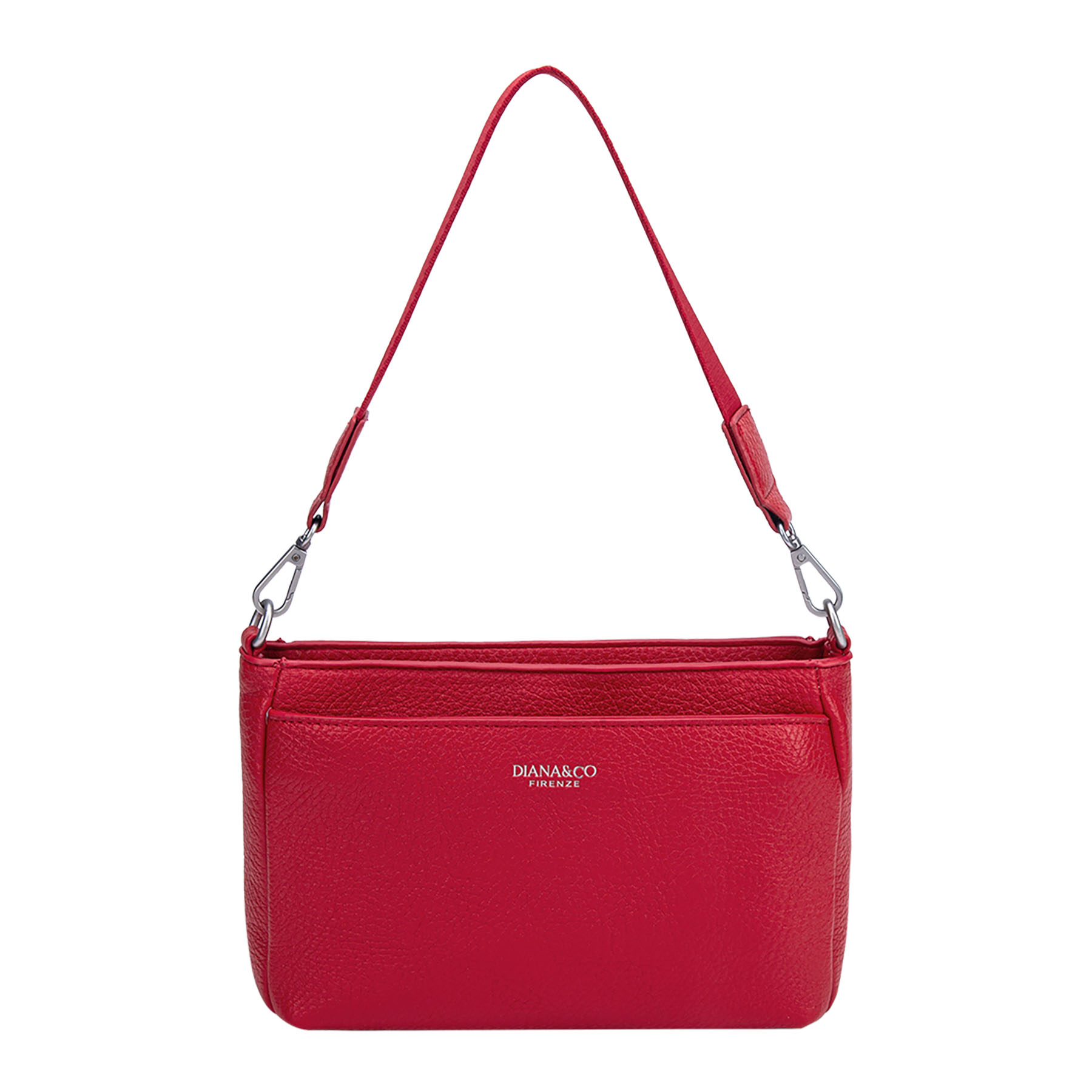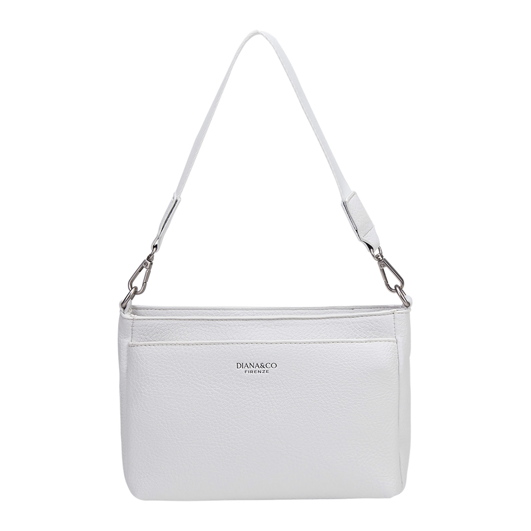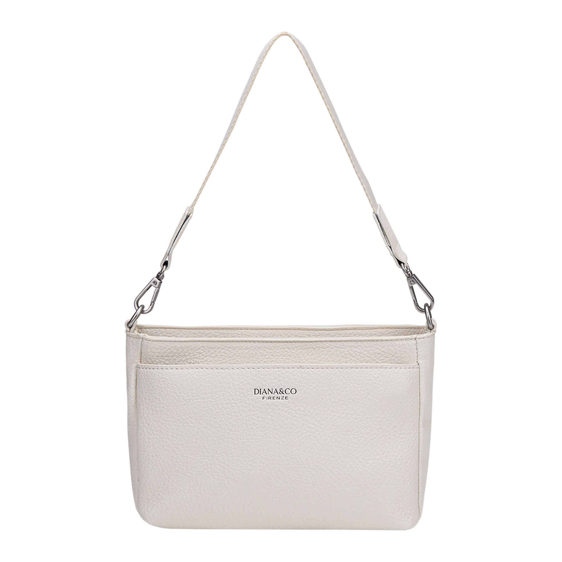 Borsa a spalla in pelle martellata dal design essenziale. Dotata di scomparto frontale, logo metallico e manico rimovibile con moschettoni, unisce praticità e stile moderno per ogni occasione.