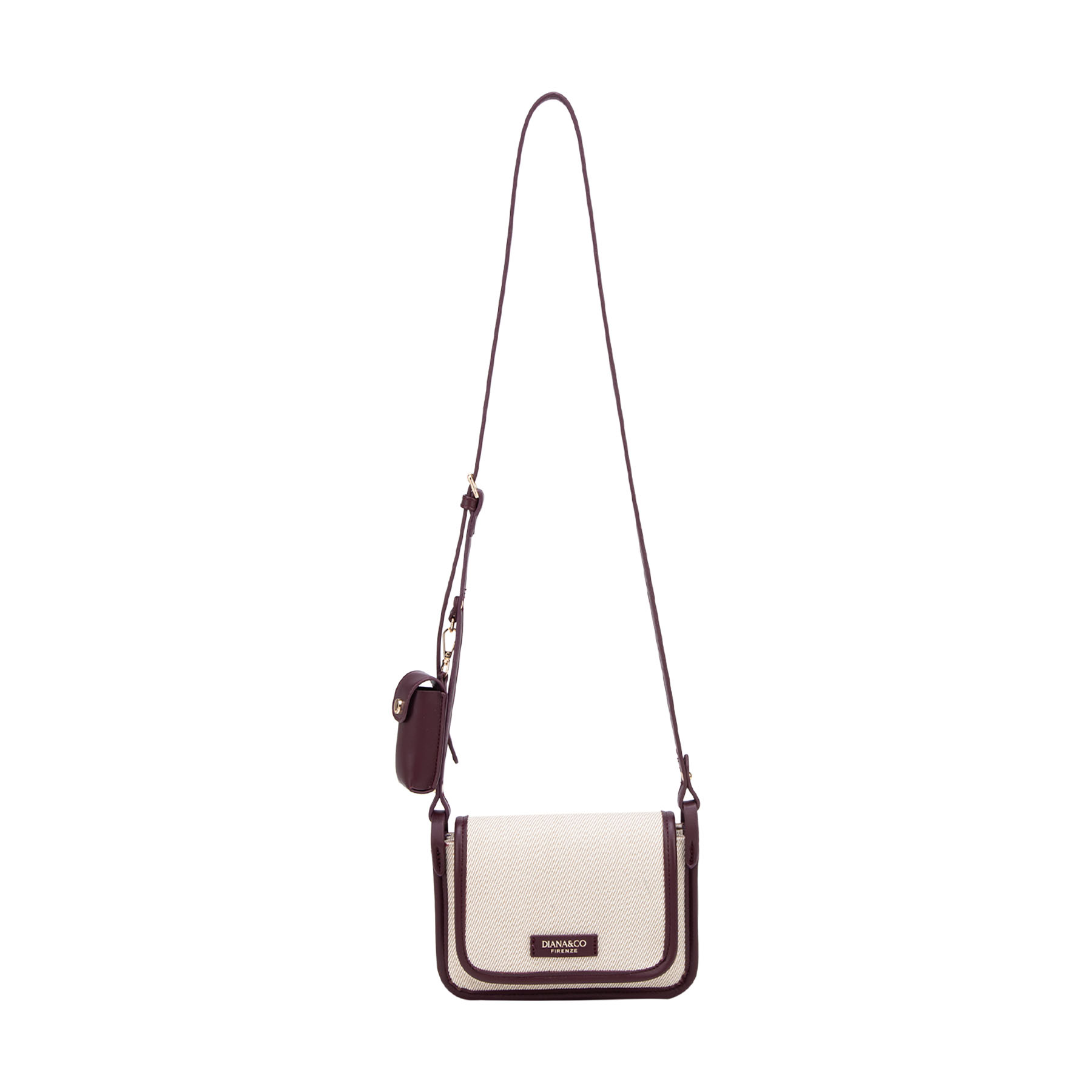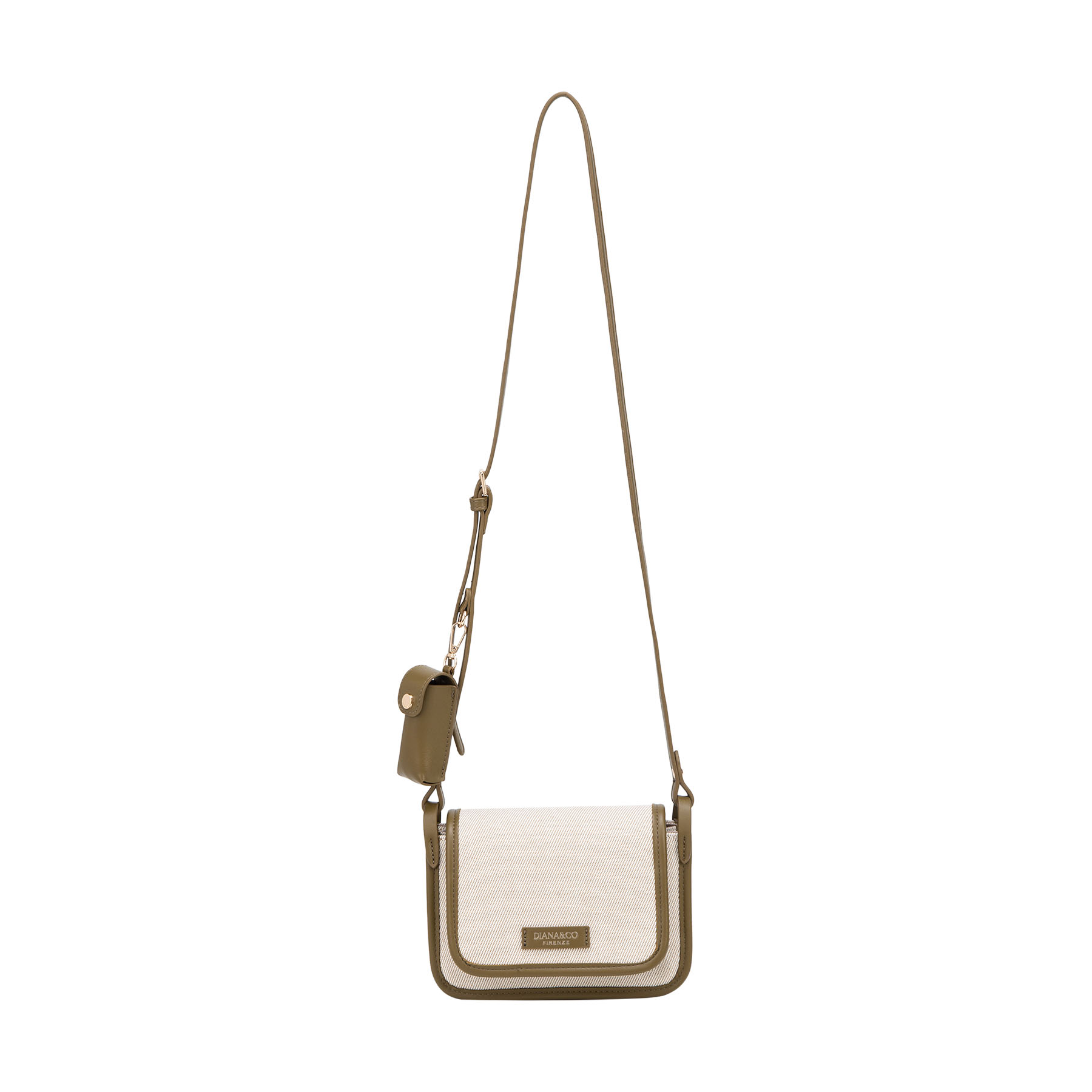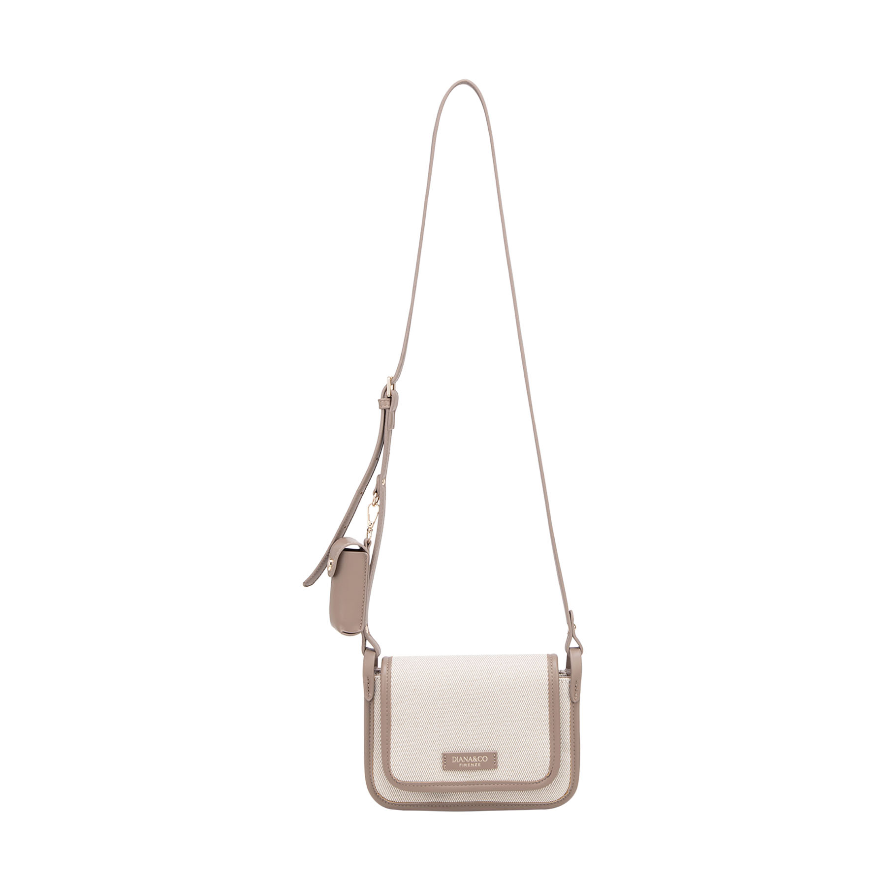Borsa a tracolla in canvas con profili in similpelle. Caratterizzata da una linea essenziale, include una tracolla regolabile impreziosita da un esclusivo porta rossetto coordinato, per un tocco di stile femminile e pratico.