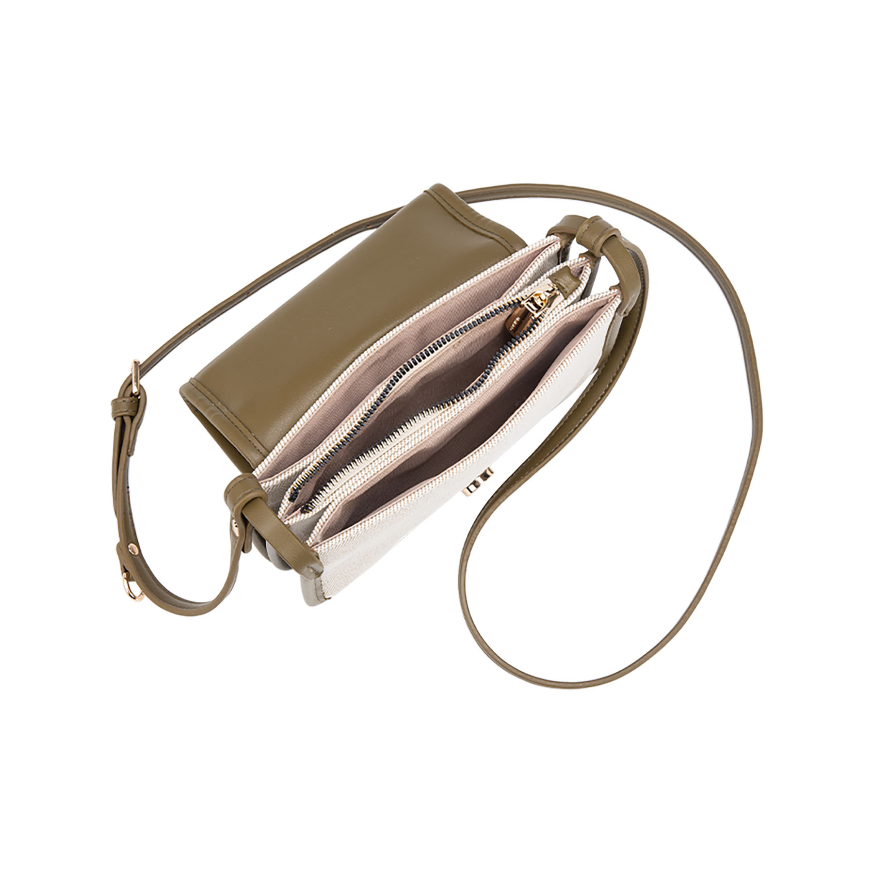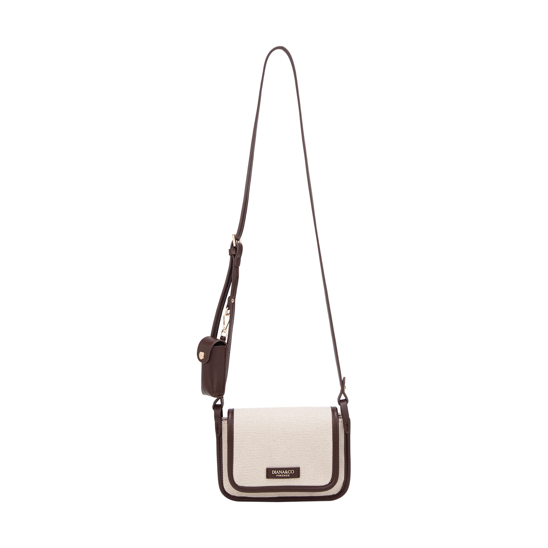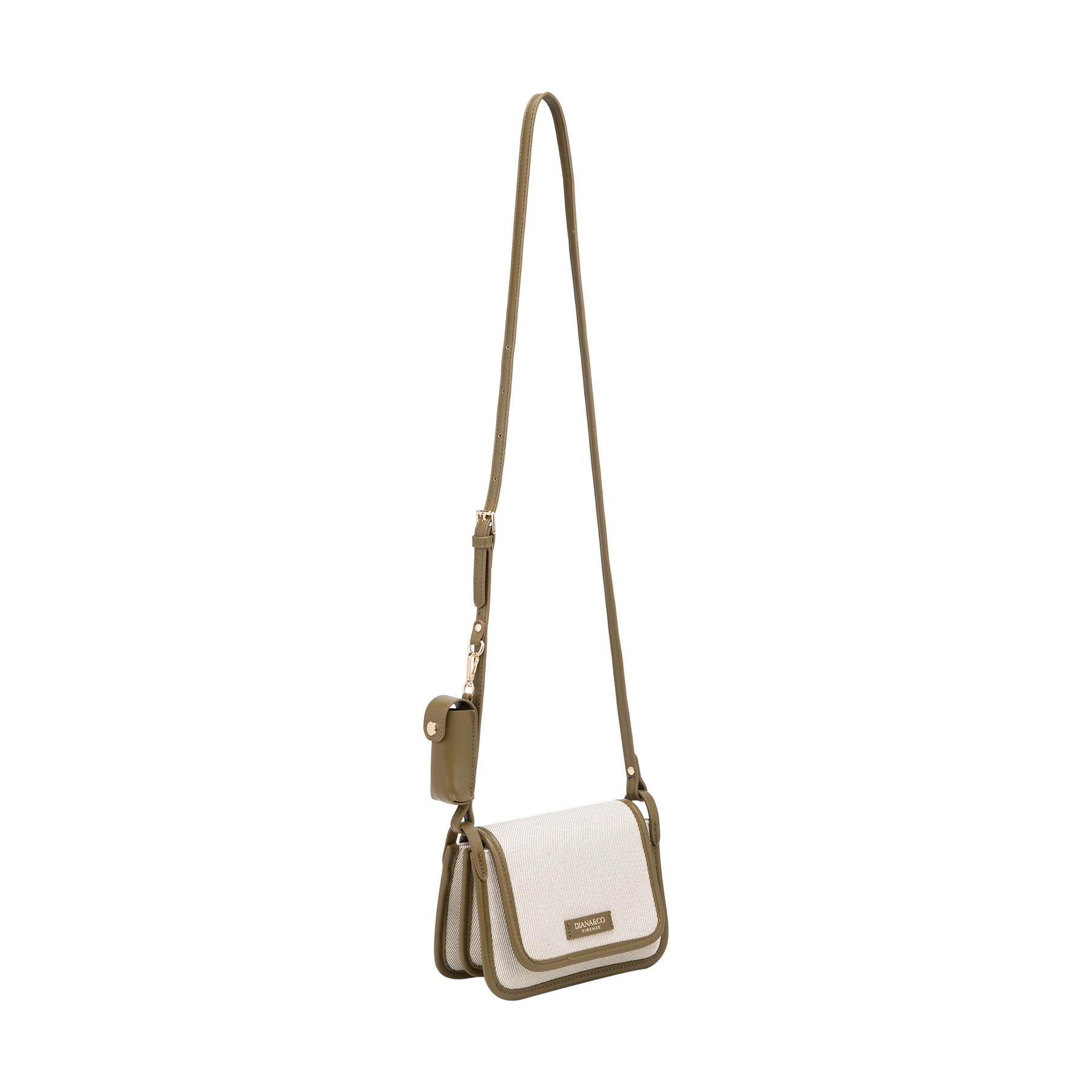 Borsa a tracolla in canvas con profili in similpelle. Caratterizzata da una linea essenziale, include una tracolla regolabile impreziosita da un esclusivo porta rossetto coordinato, per un tocco di stile femminile e pratico.