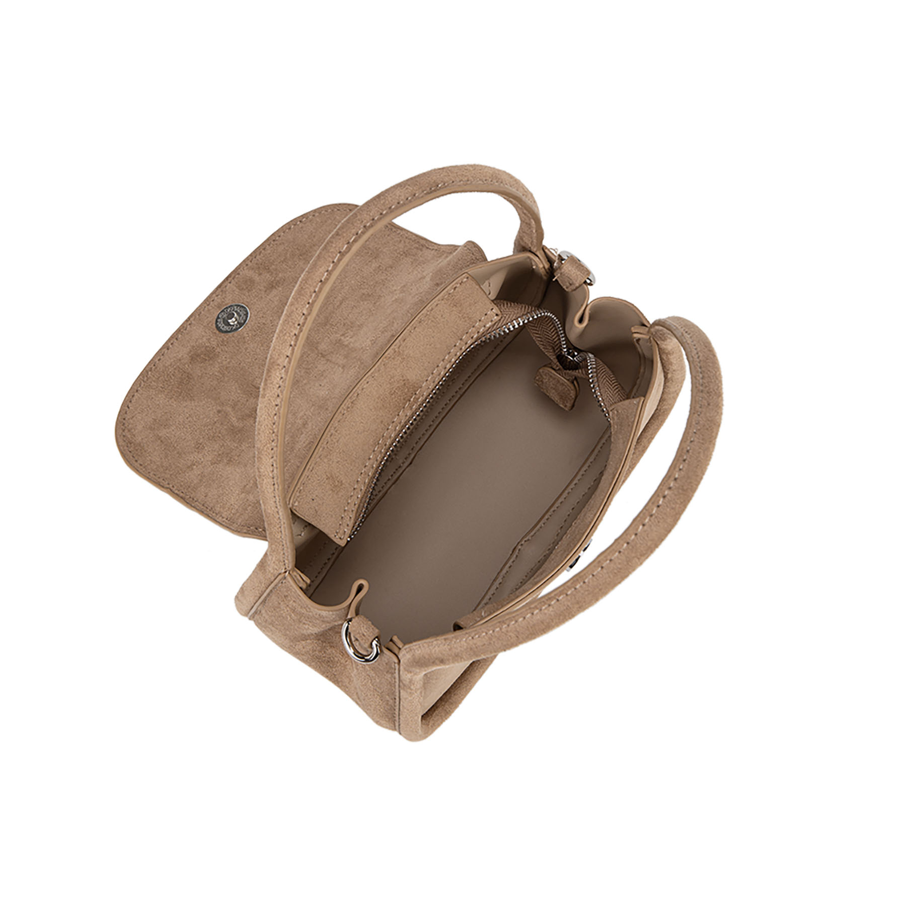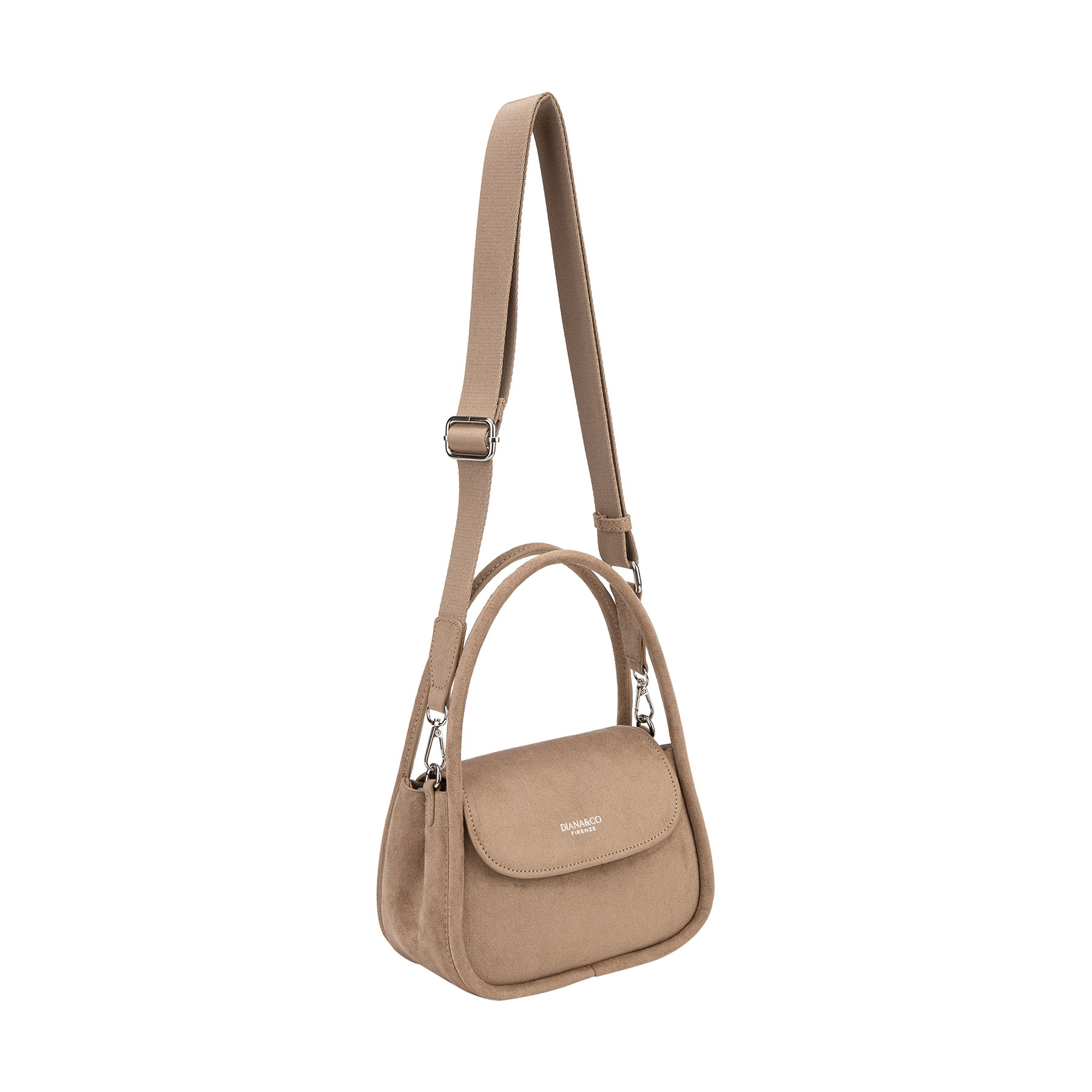 Borsa a spalla in morbido camoscio dal design arrotondato. Linea essenziale e logo frontale: un accessorio chic per un look ricercato.