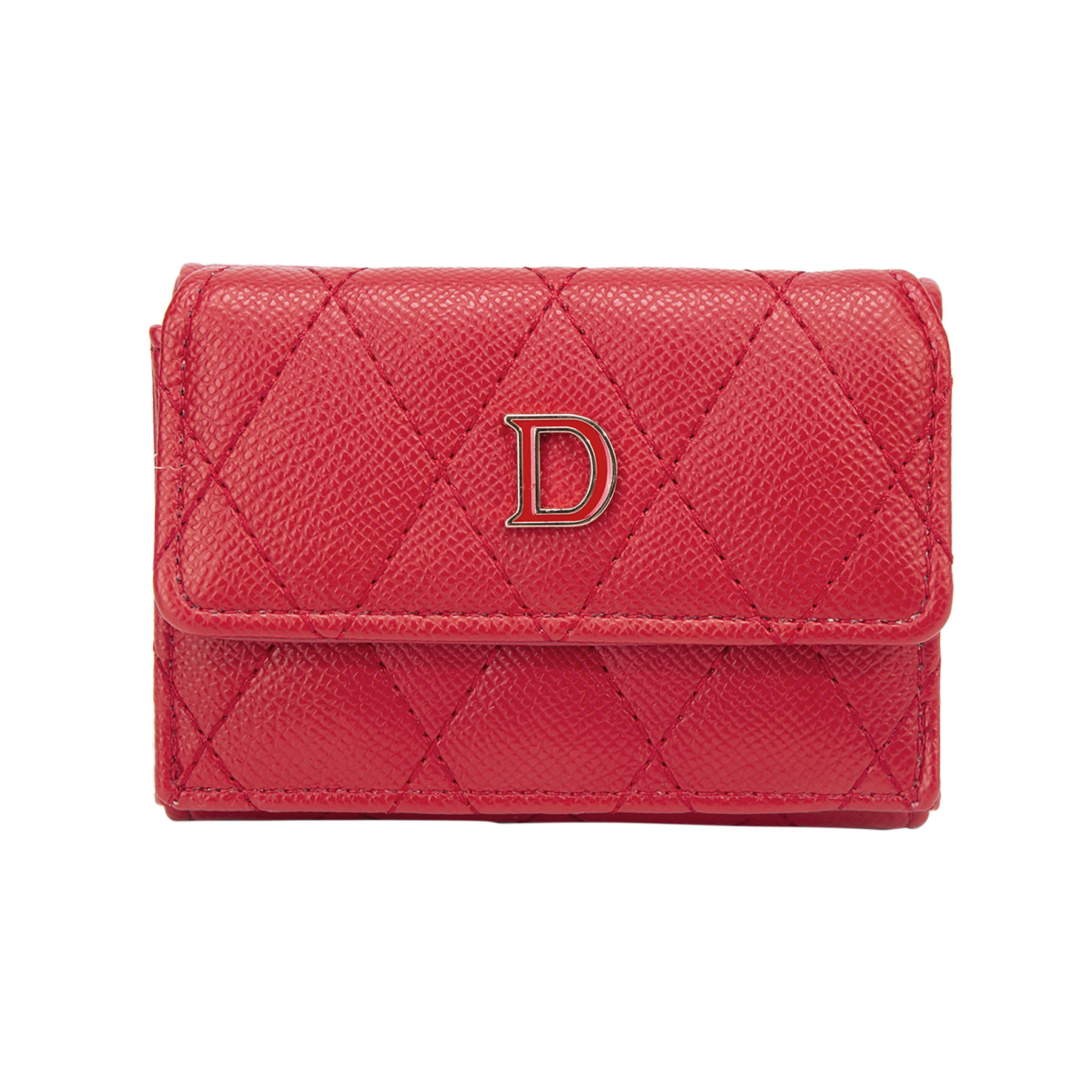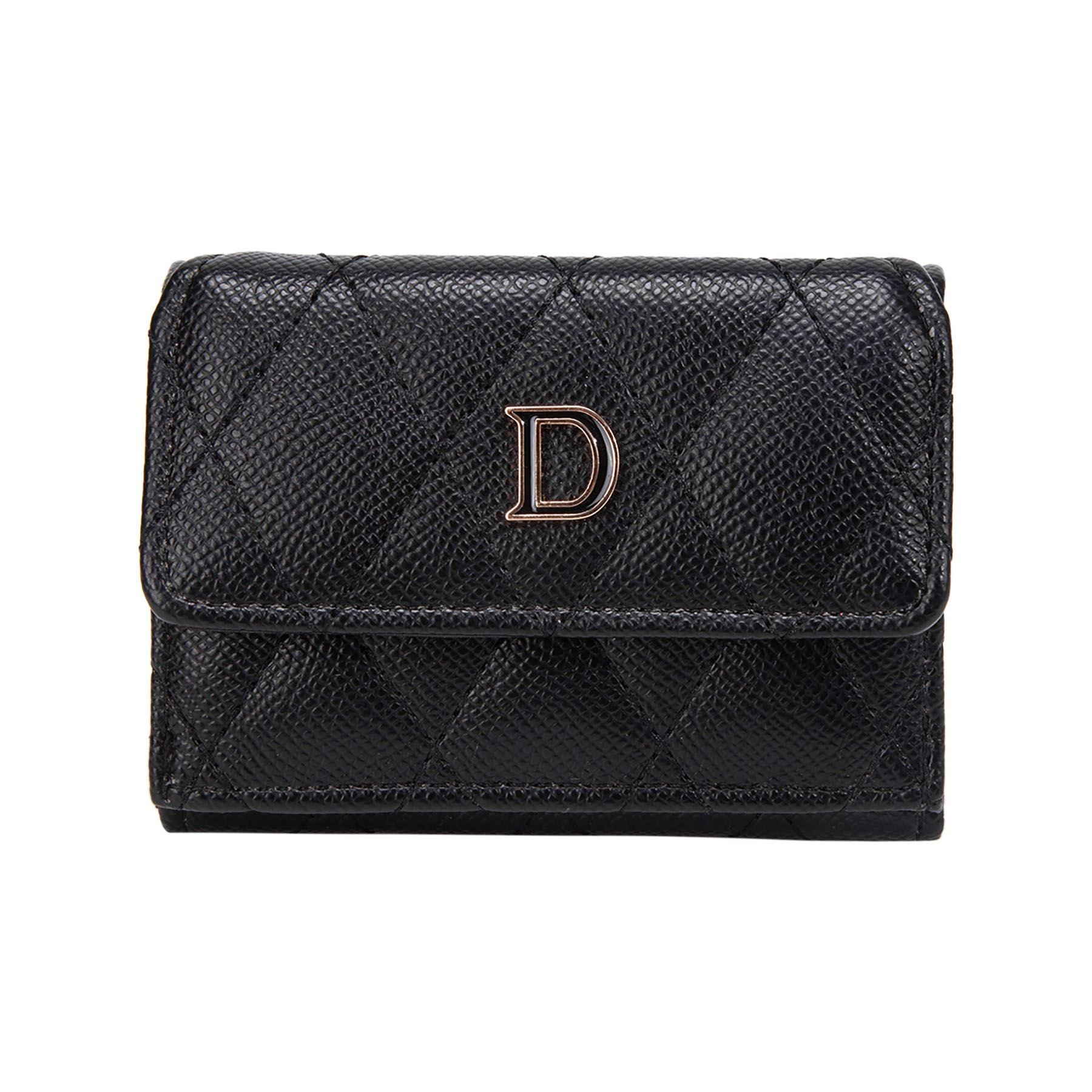 Compatto ed elegante, realizzato in materiale effetto pelle con raffinata lavorazione trapuntata e logo frontale. Dotato di scomparti interni per carte, banconote e monete, è perfetto per mantenere tutto organizzato con stile nella vita di tutti i giorni