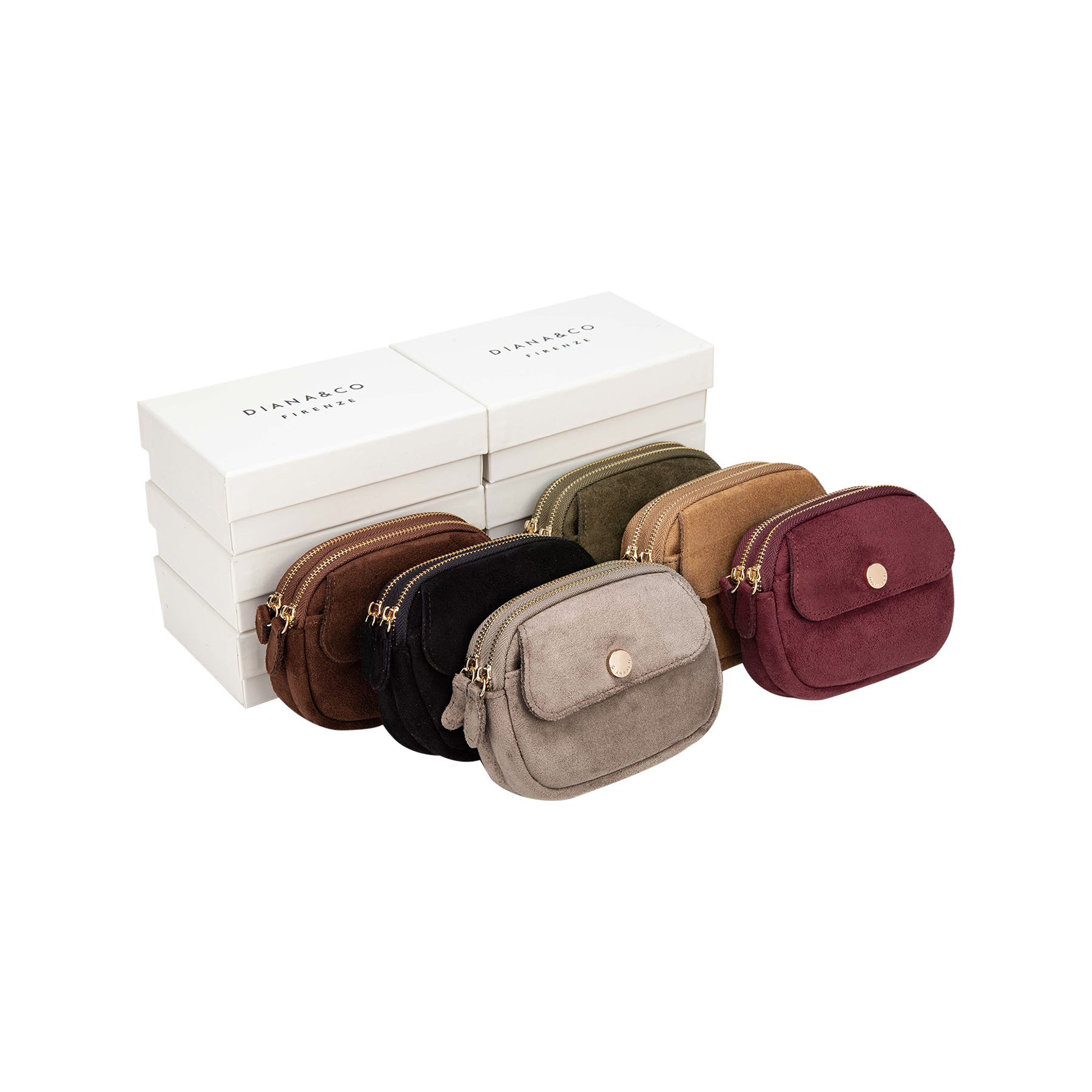 PORTAMONETE CON DOPPIA TASCA SCAMOSCIATO quantità