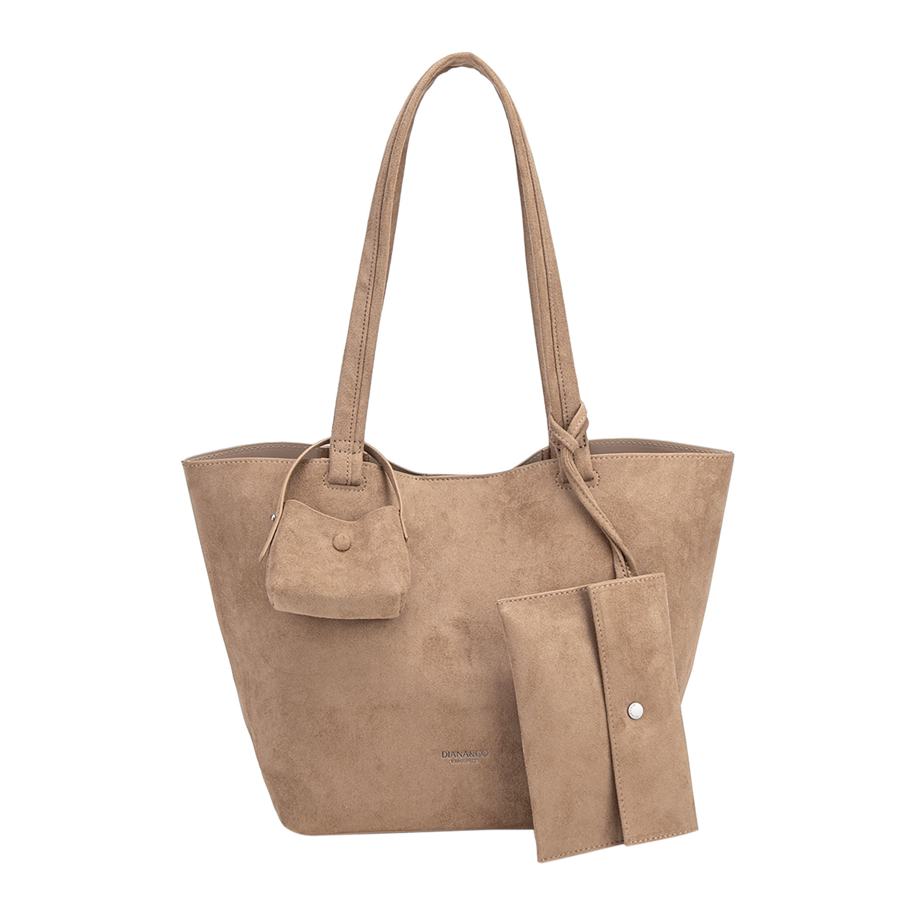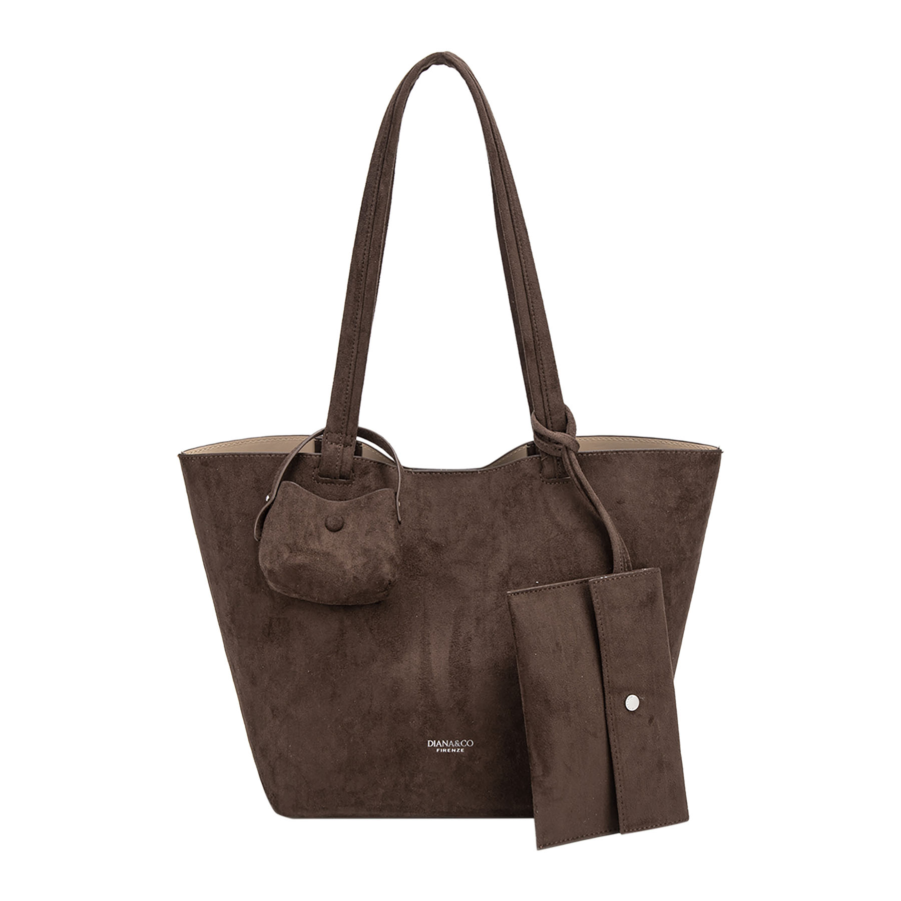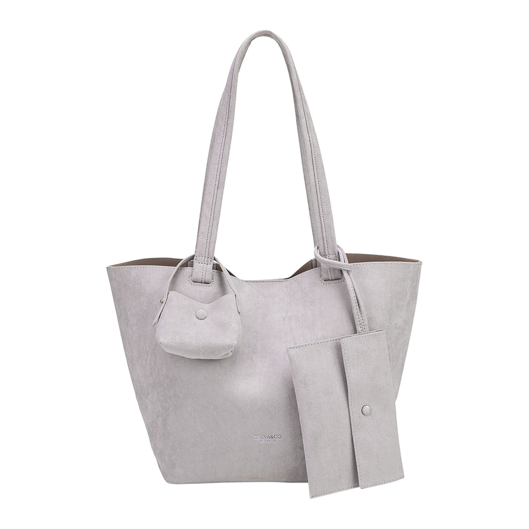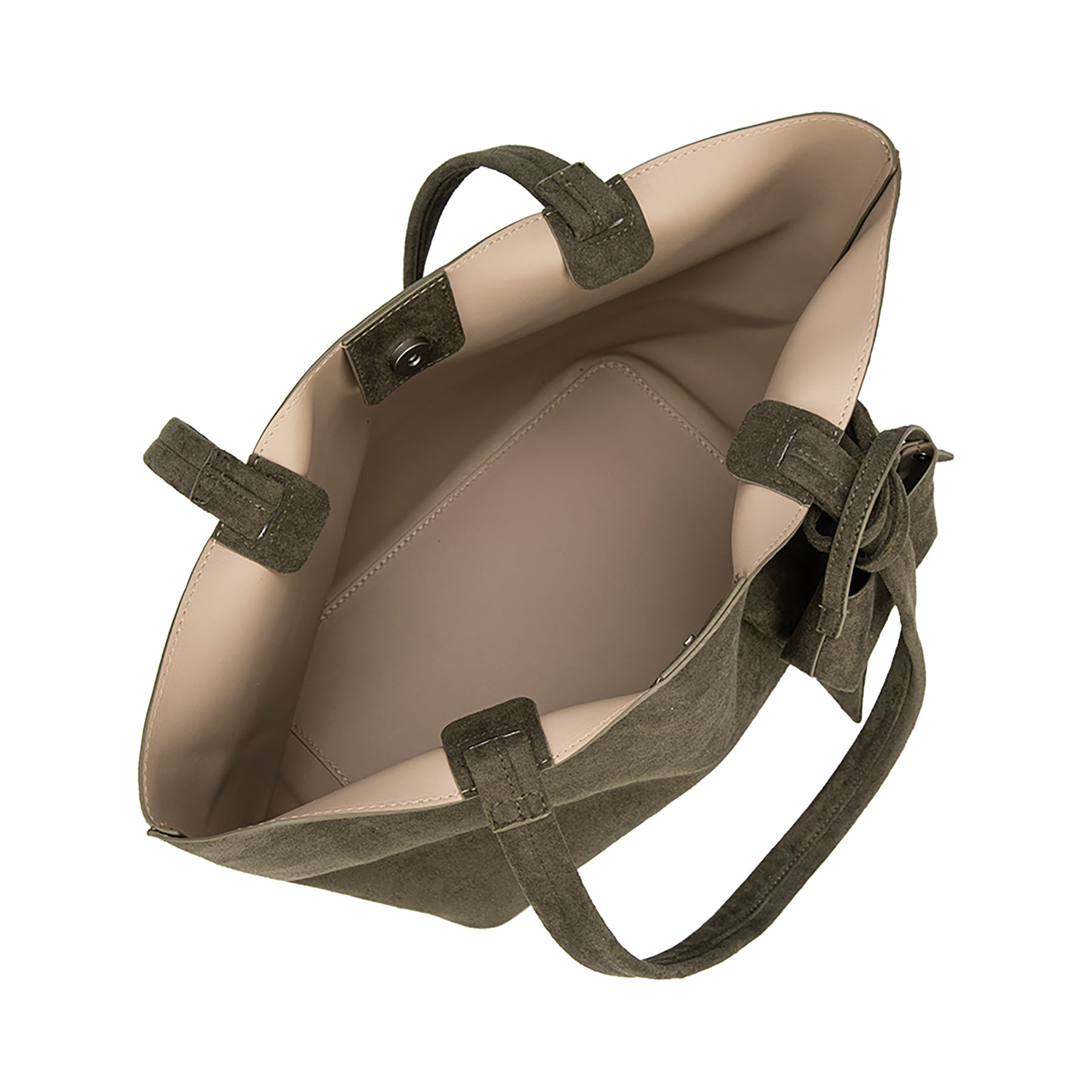 Elegante shopper in effetto scamosciato, caratterizzata da un design essenziale e capiente.