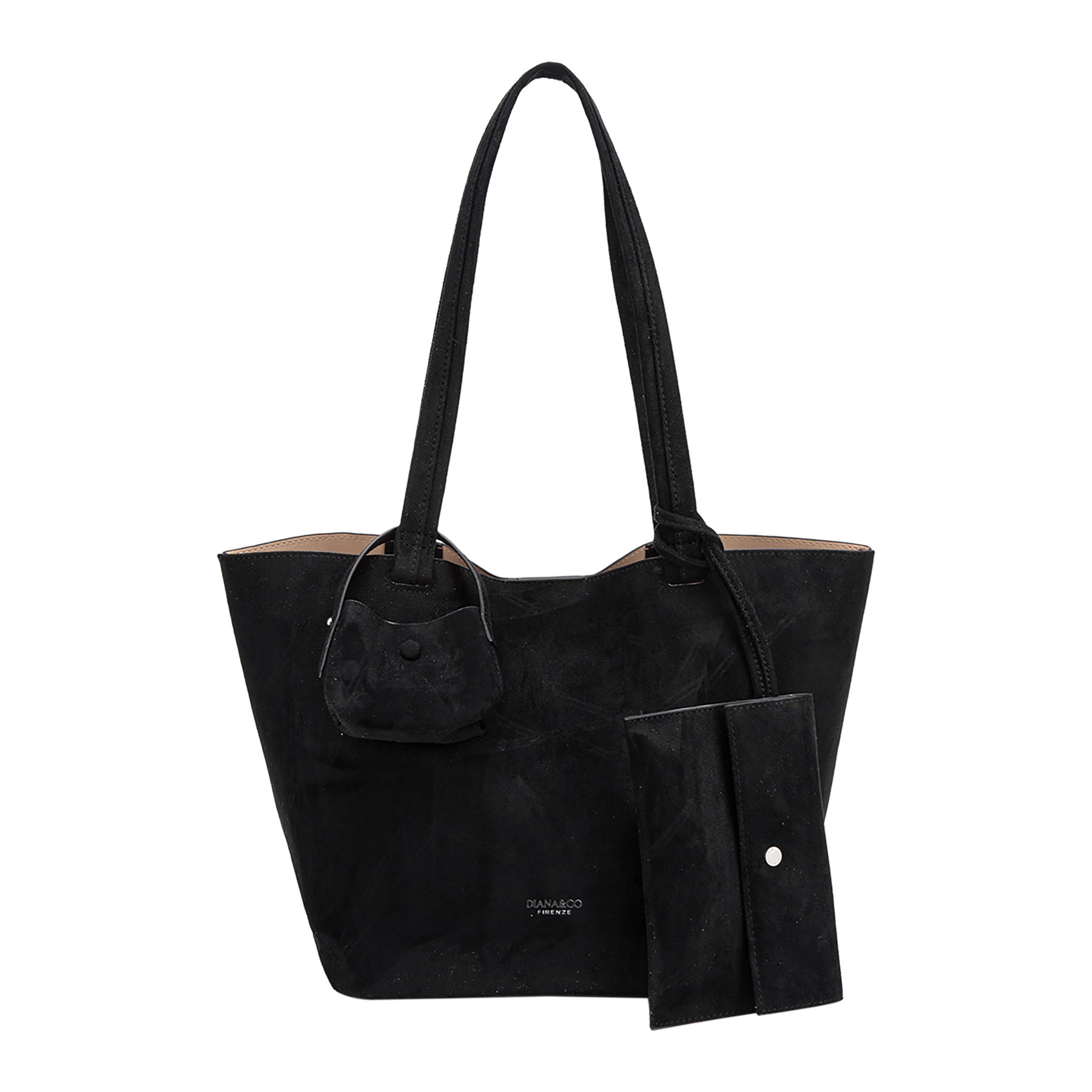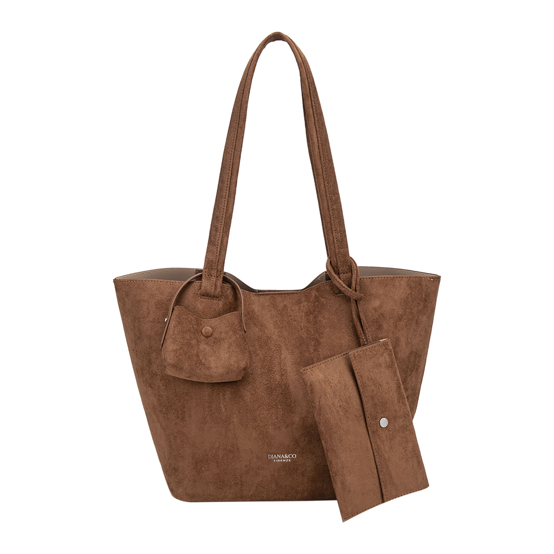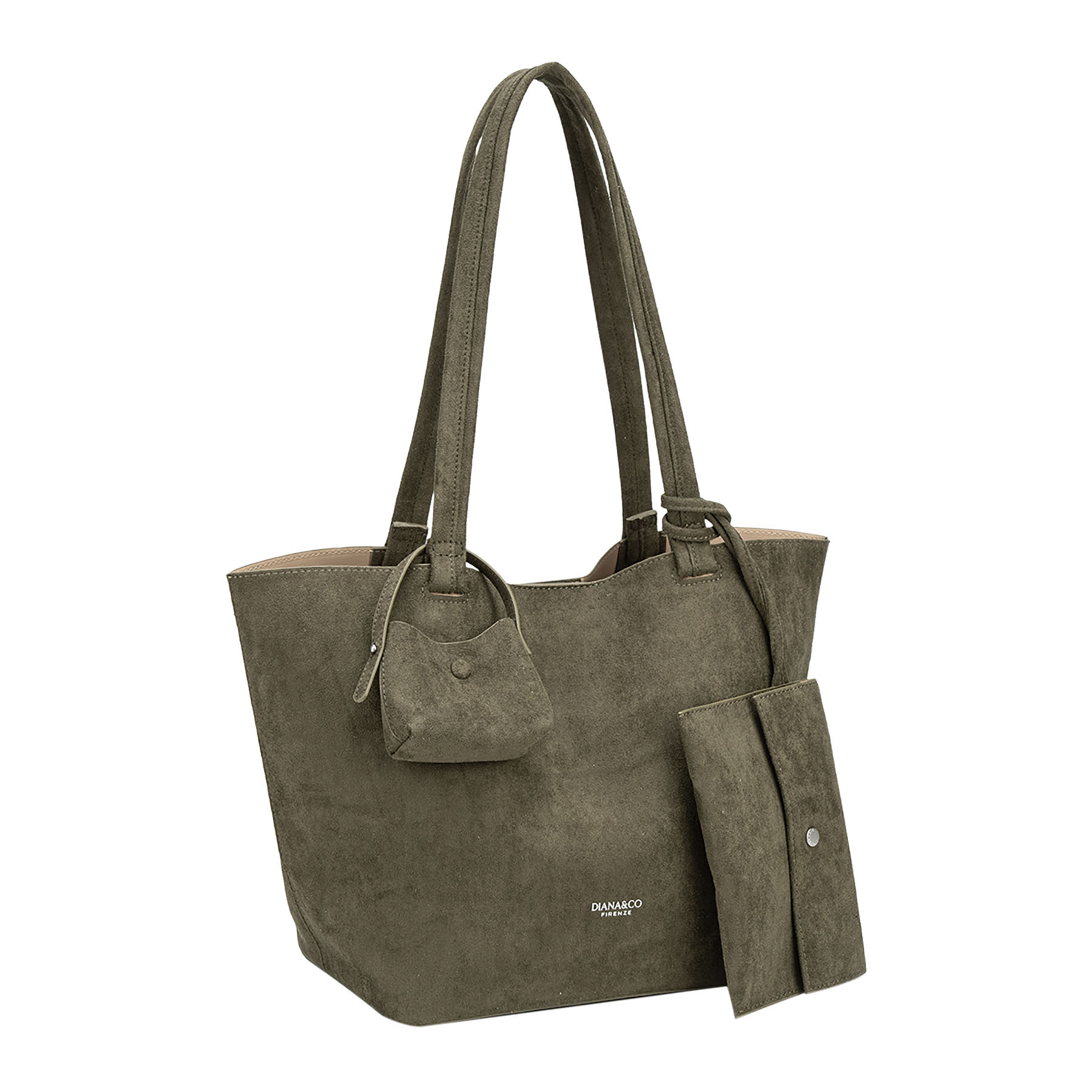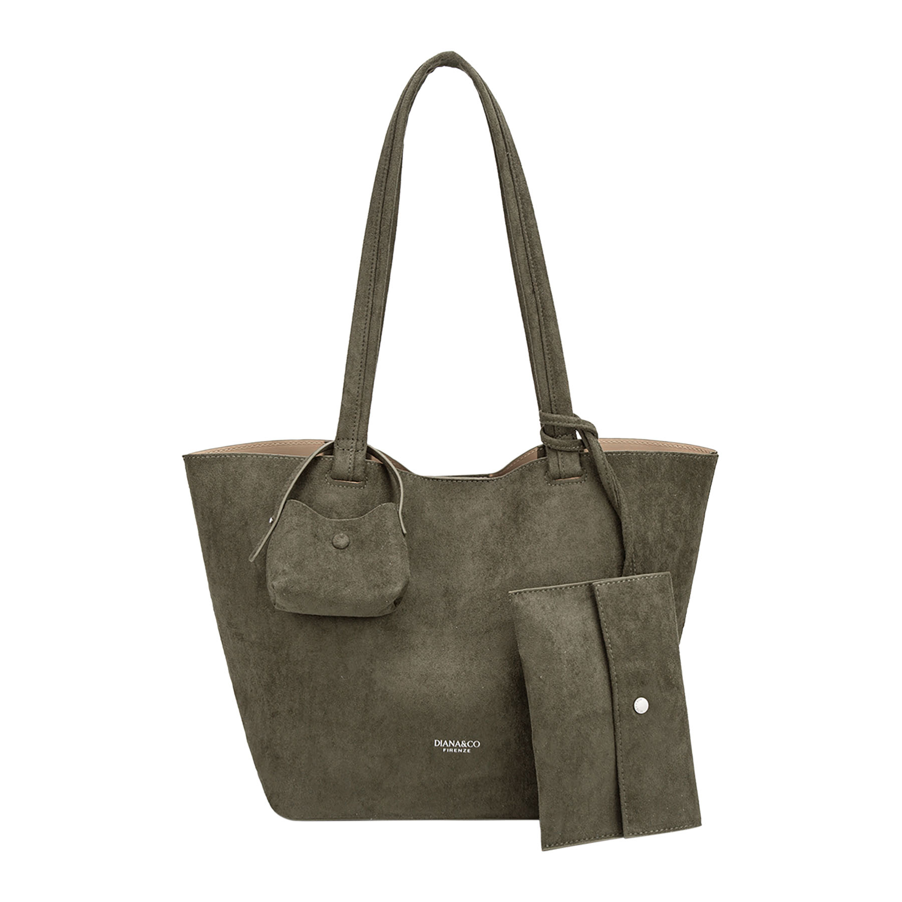 Elegante shopper in effetto scamosciato, caratterizzata da un design essenziale e capiente.