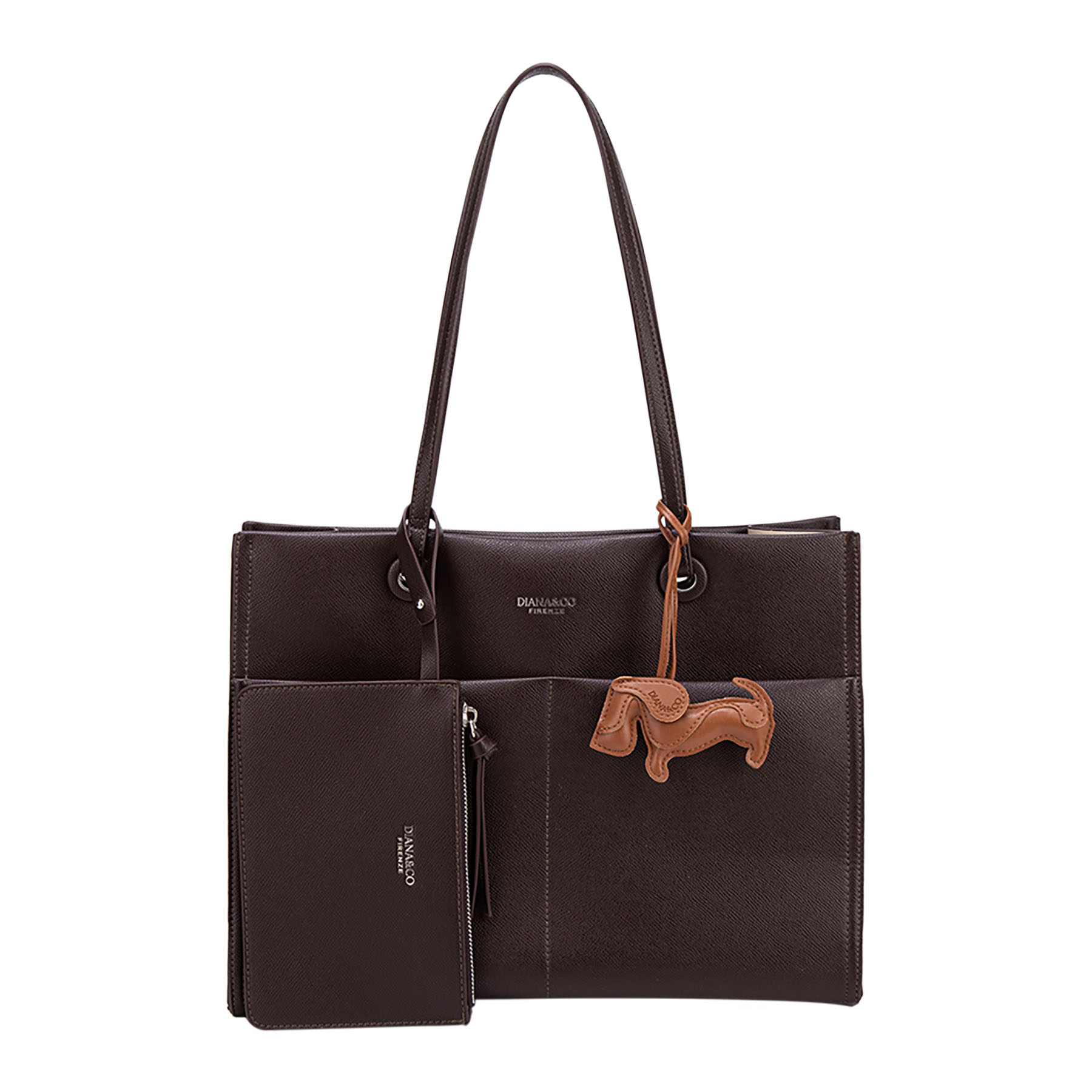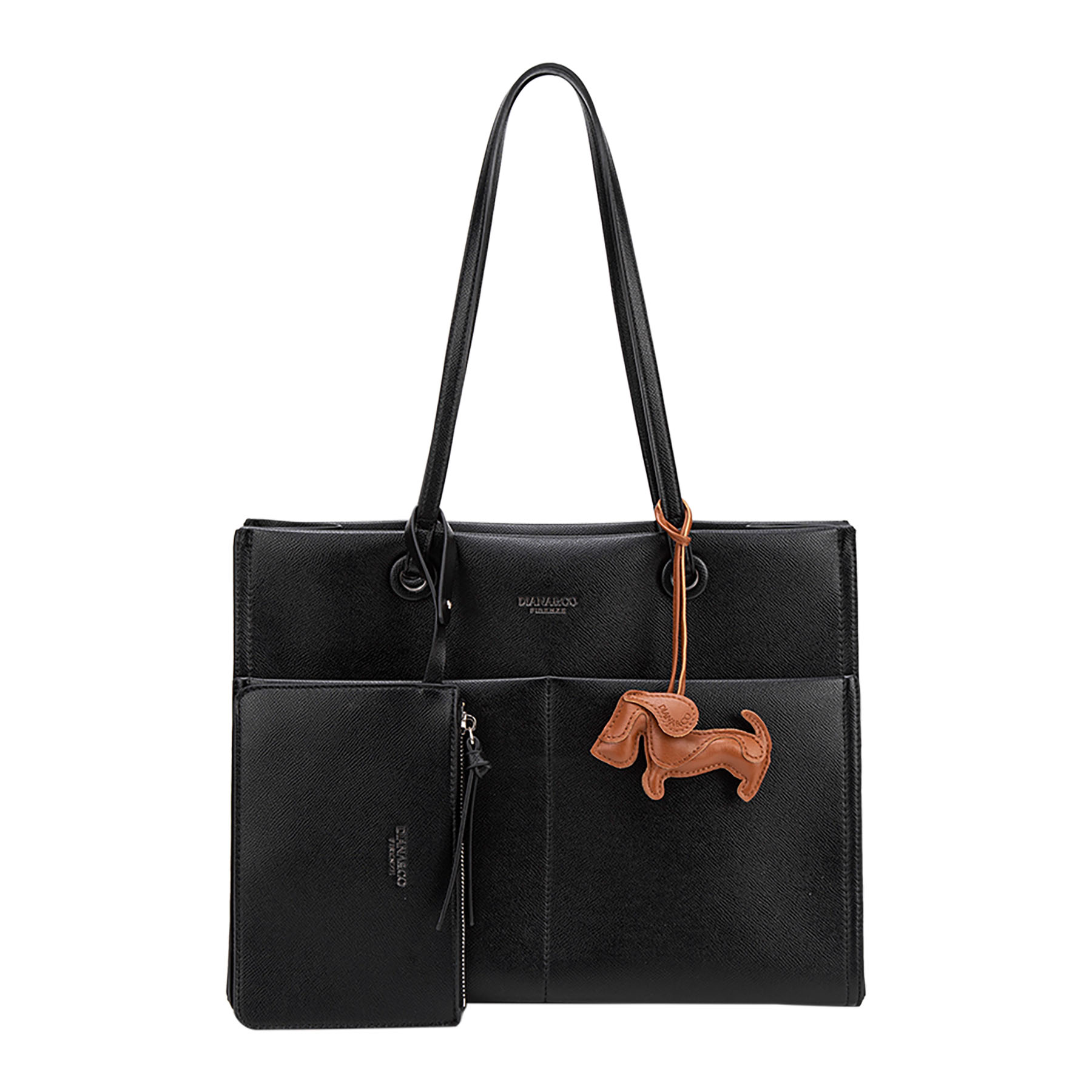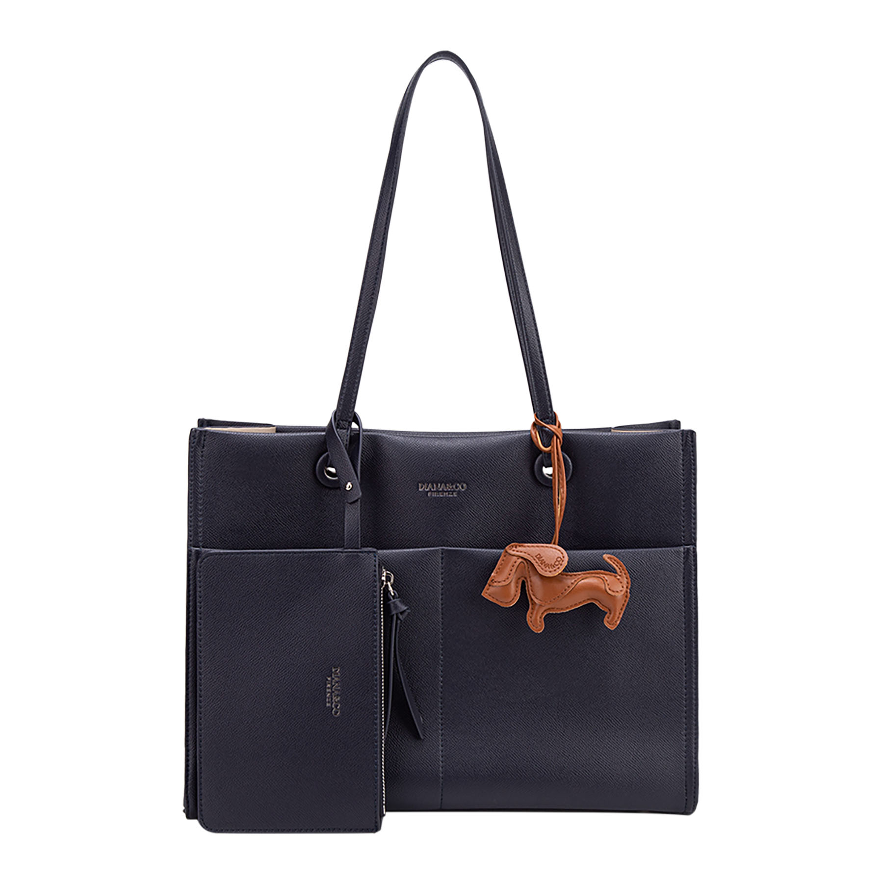 La borsa Diana&Co Firenze è una tote elegante e pratica, perfetta per l’uso quotidiano. Realizzata in materiale PU, presenta linee pulite, doppi manici comodi e un design capiente con tasche interne organizzate. Il dettaglio charm decorativo aggiunge un tocco di stile, mentre il piccolo pouch coordinato la rende ancora più funzionale.