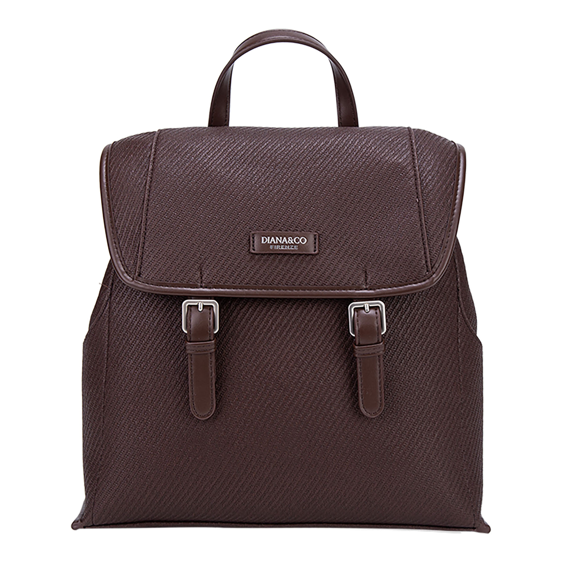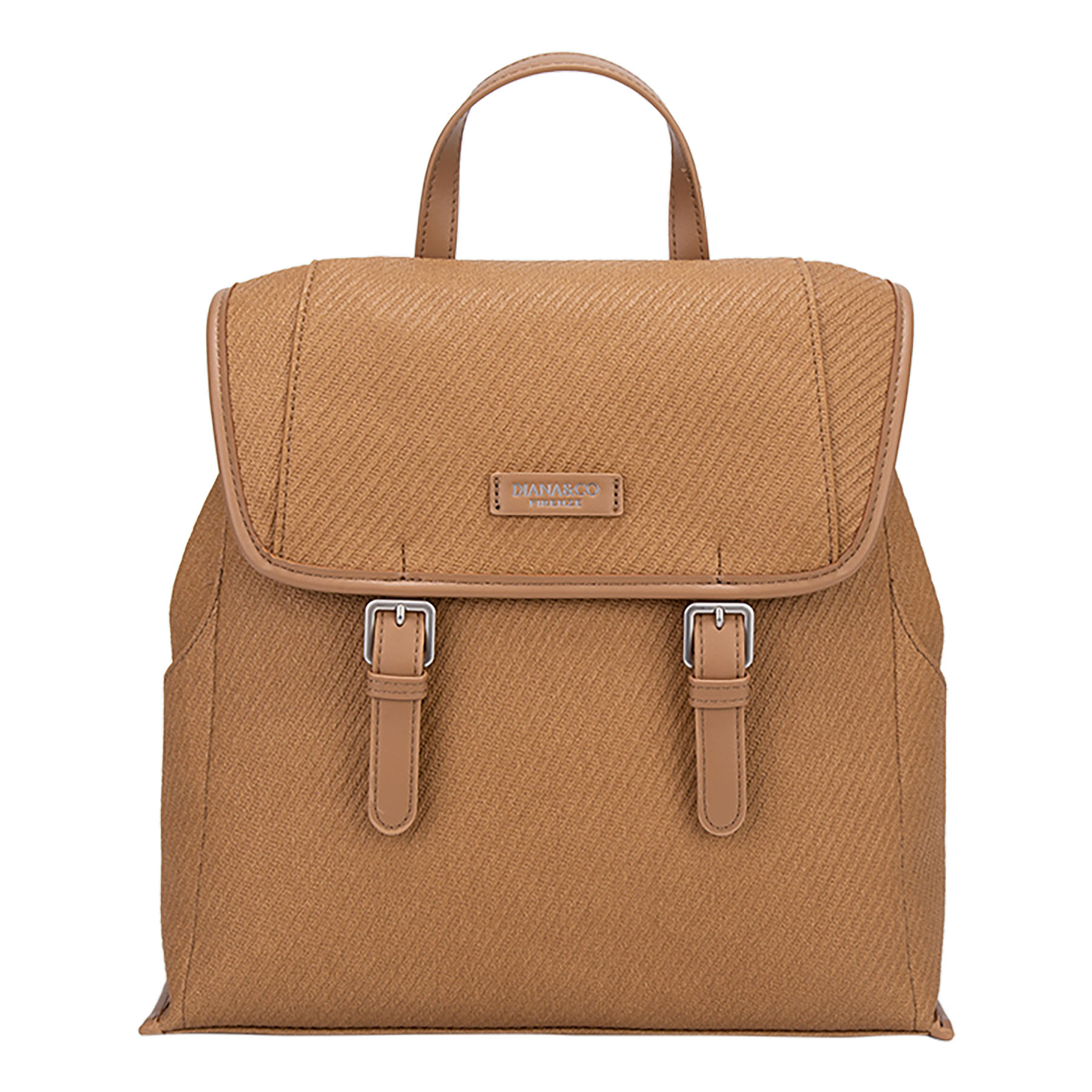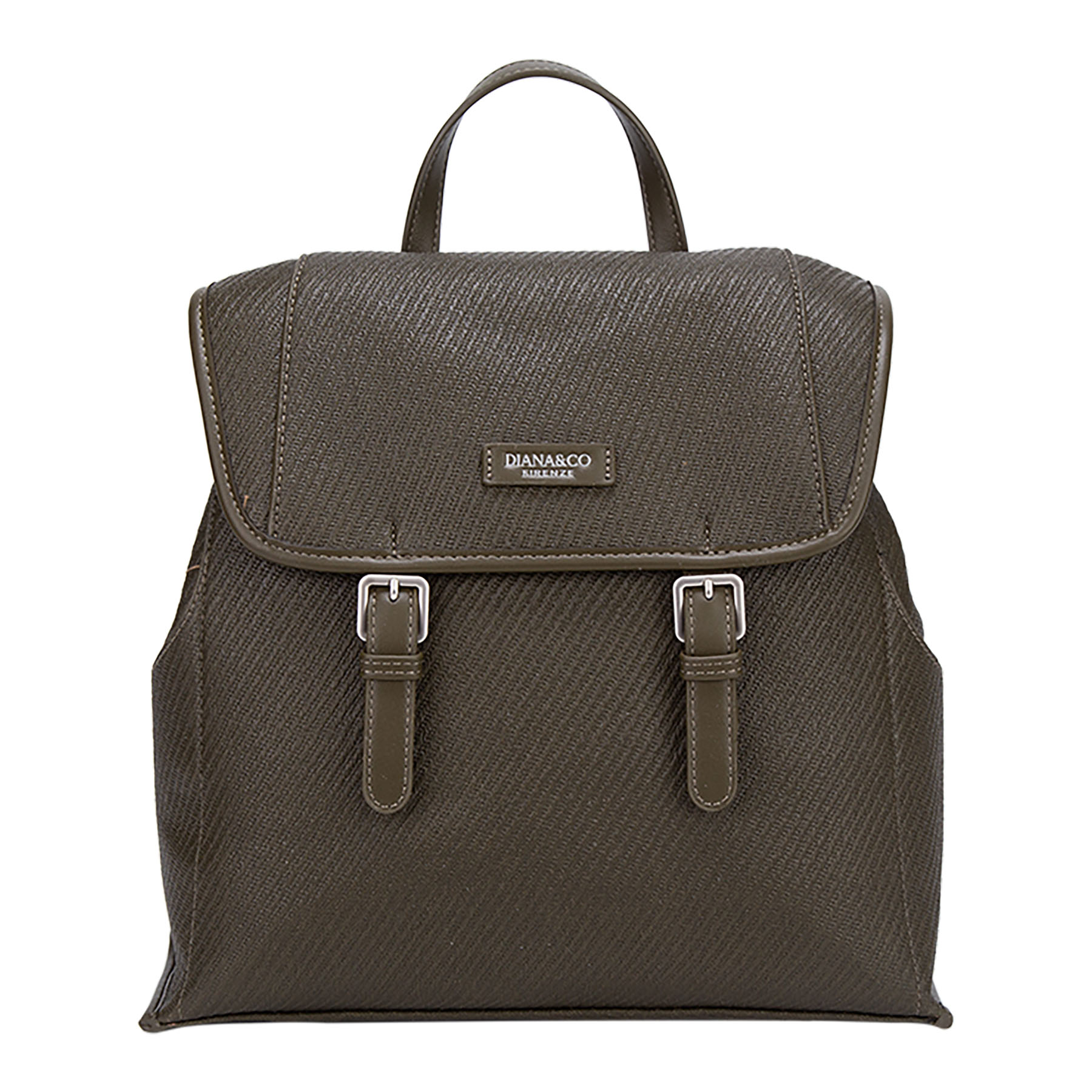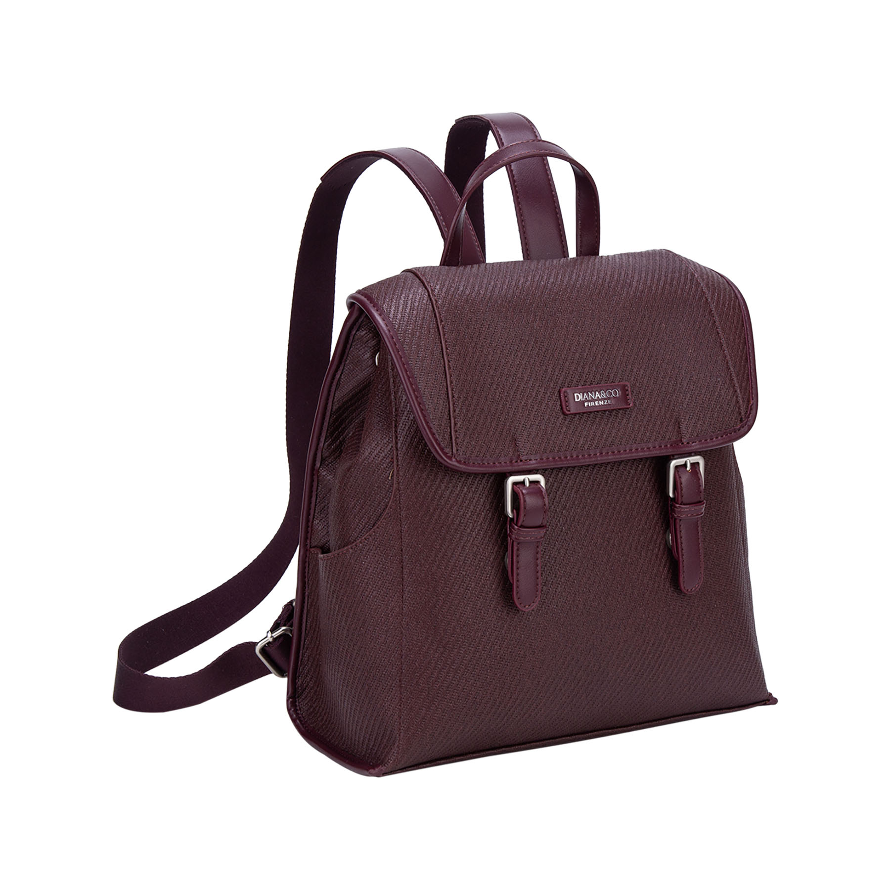 Zaino dal design strutturato in tessuto materico con dettagli in ecopelle. Patta frontale con cinturini, manico superiore e logo silver: un accessorio capiente e di tendenza.