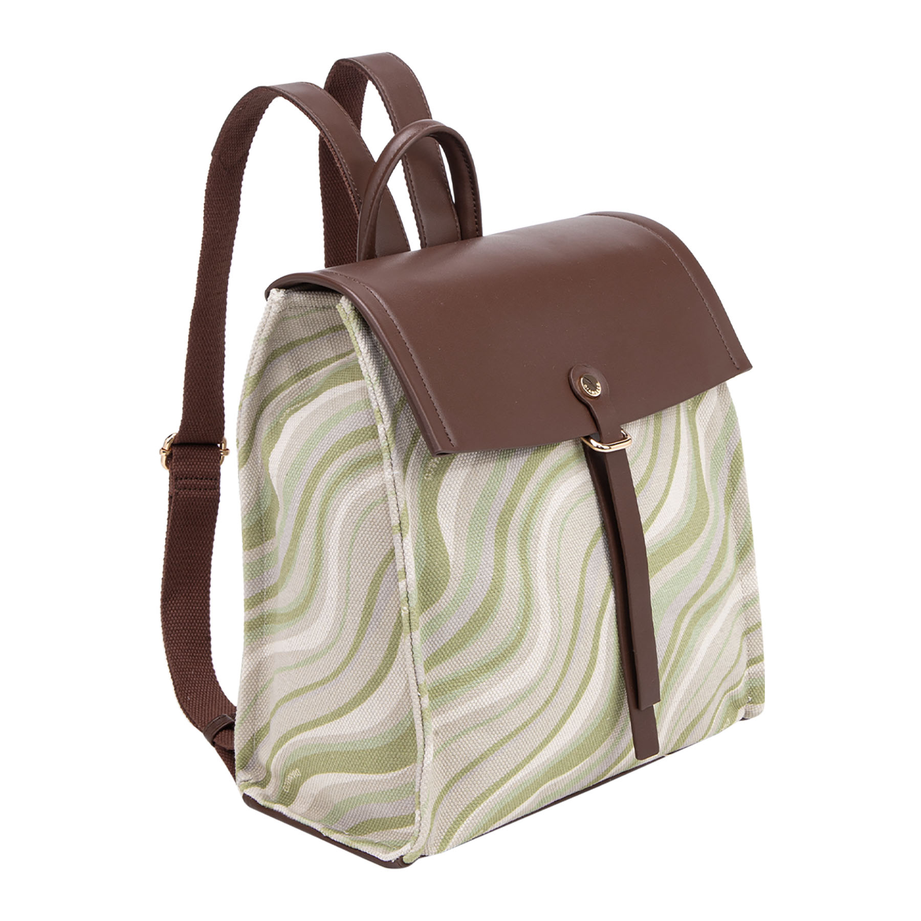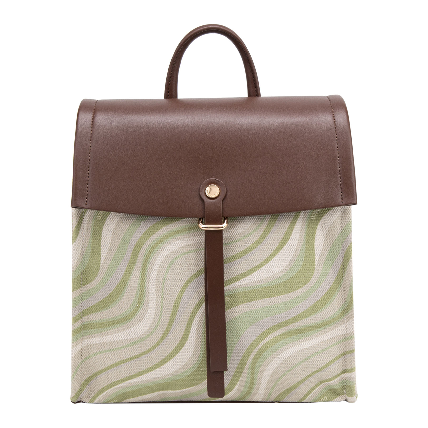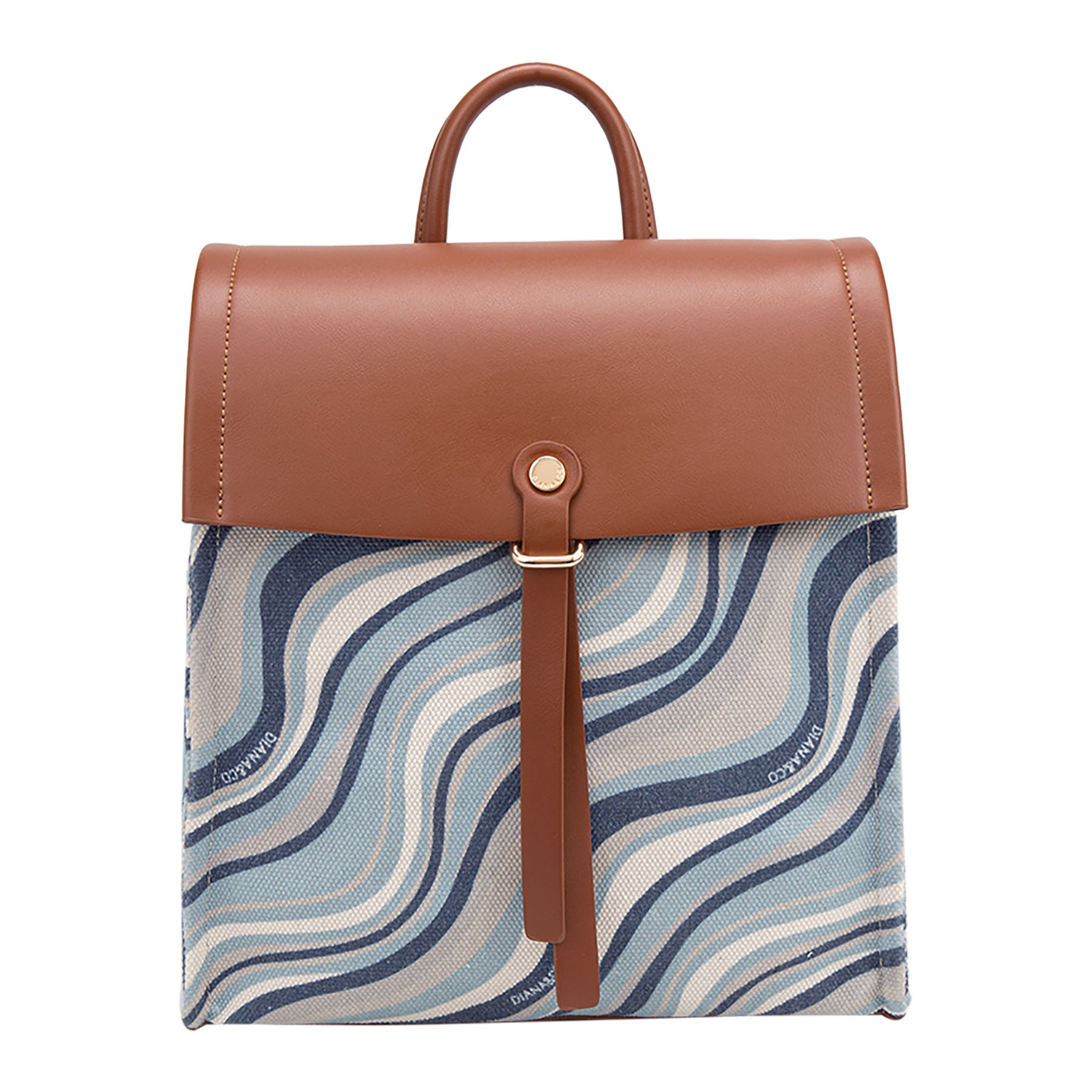 Zainetto casual in tessuto con motivo a onde, completato e impreziosito da patta, spallacci e dettagli in similpelle con finiture dorate.