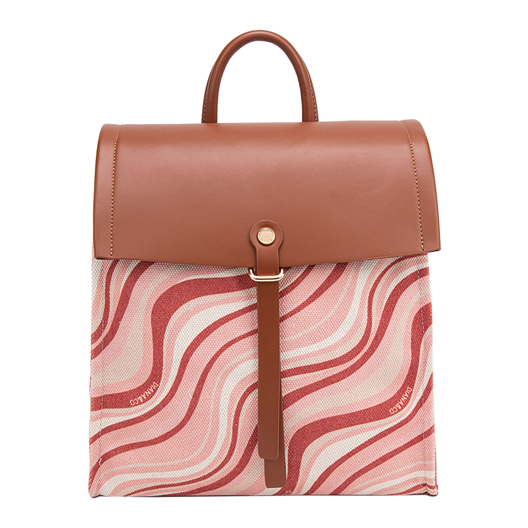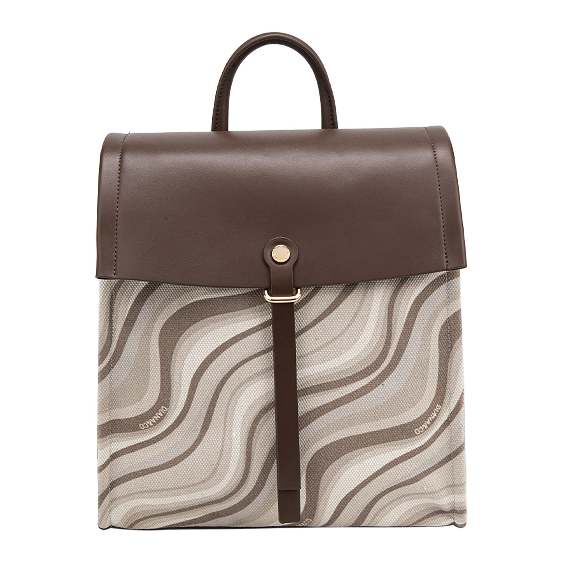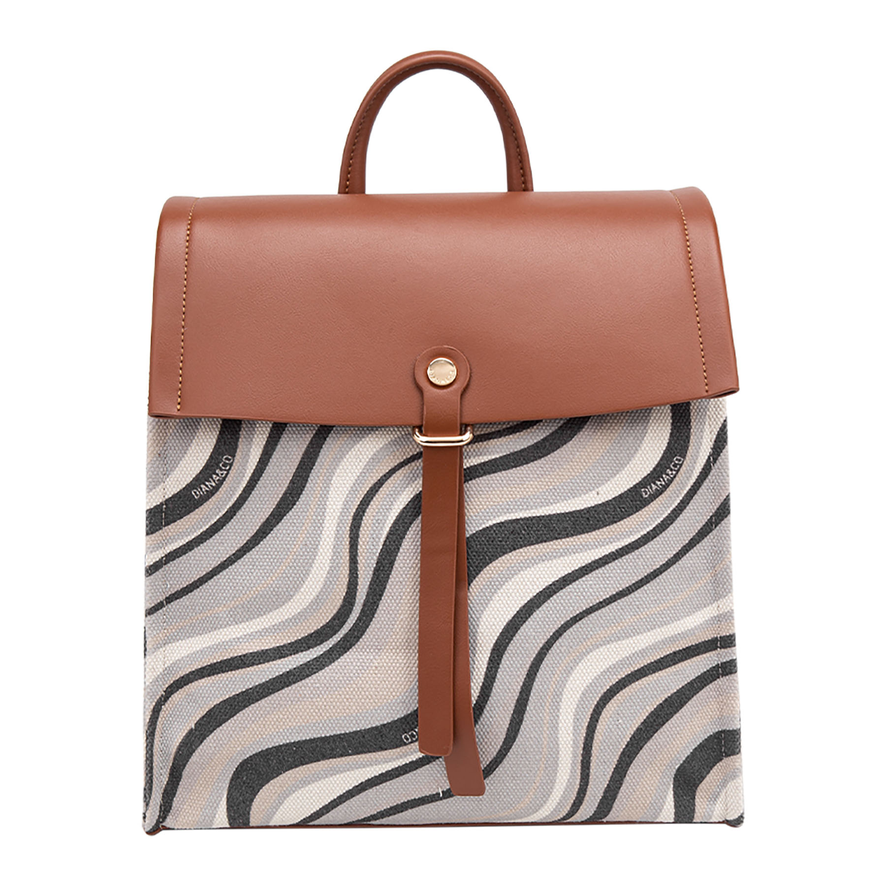 Zainetto casual in tessuto con motivo a onde, completato e impreziosito da patta, spallacci e dettagli in similpelle con finiture dorate.